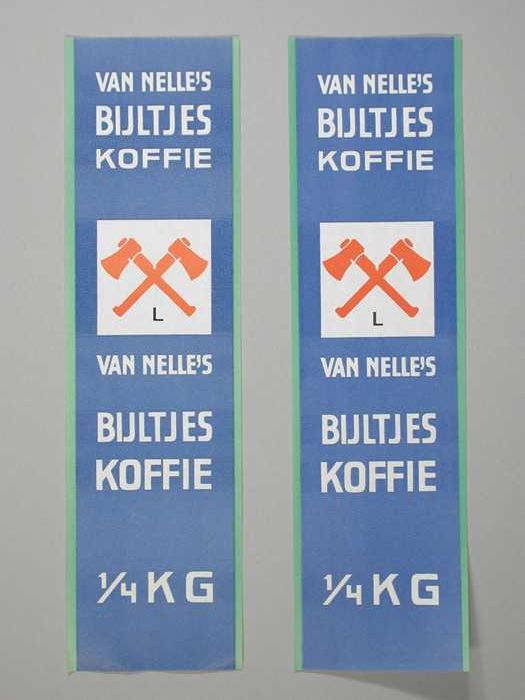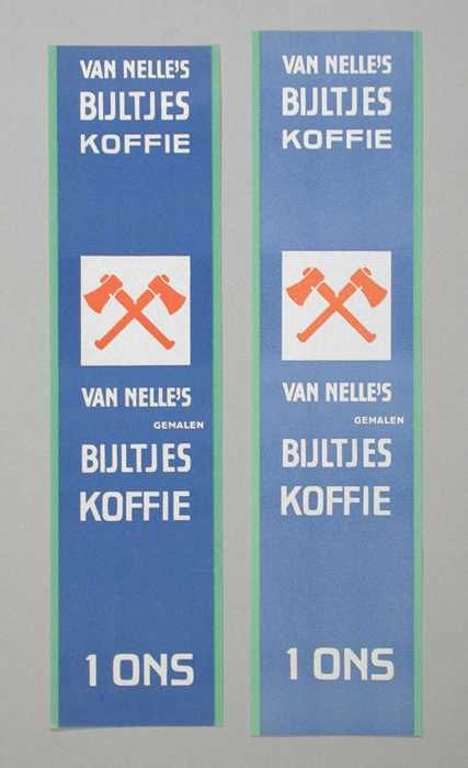 Twee papieren labels VAN NELLE'S BIJLTJES KOFFIE, ge...