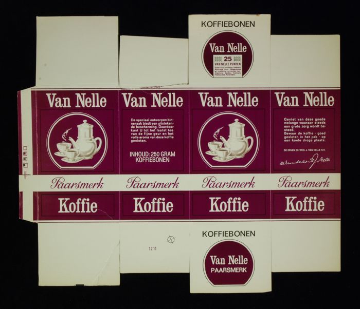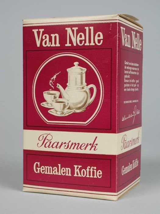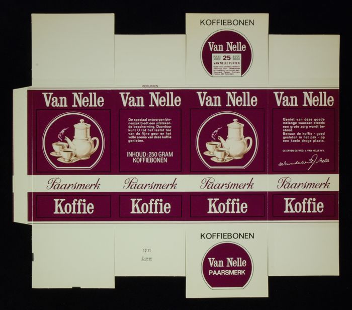 Wit en paars, kartonnen pak VAN NELLE PAARSMERK KOFF...