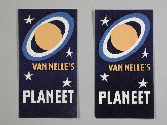 Twee kleine, papieren labels VAN NELLE'S PLANEET KOFFIE
