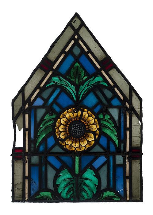 Deel van glas-in-loodraam Petruskerk, met groene pla...