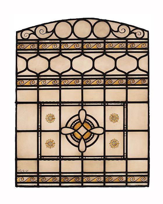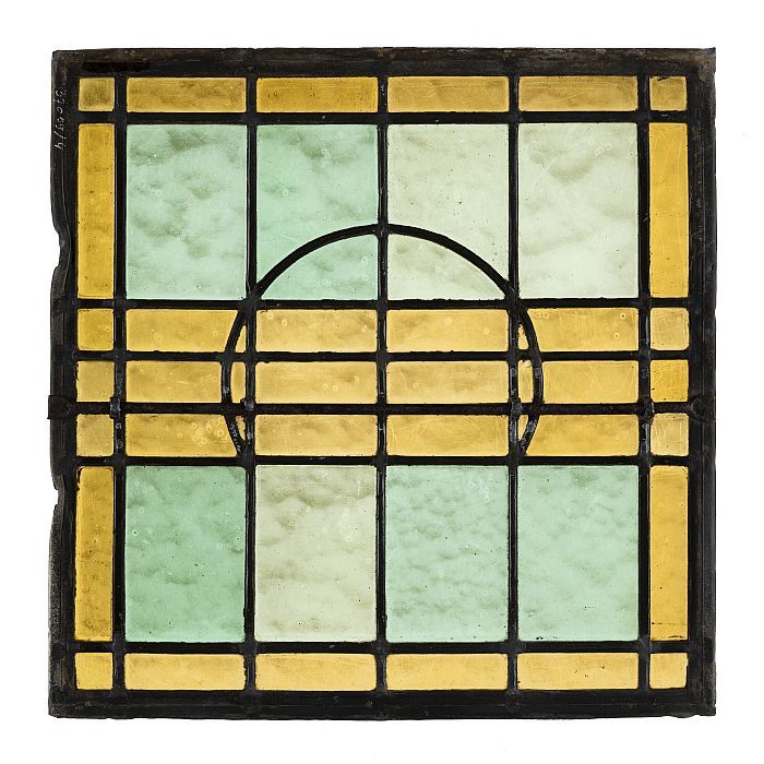 Zes onderdelen van een glas-in-loodraam in groen en ...
