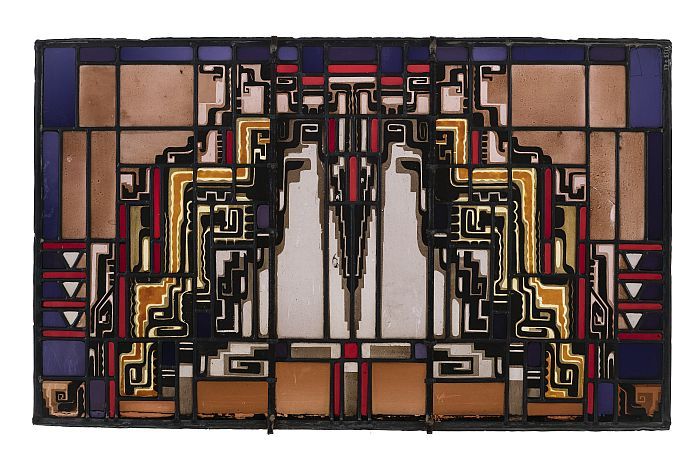 Symmetrisch Art Deco glas-in-loodraam met punt naar ...