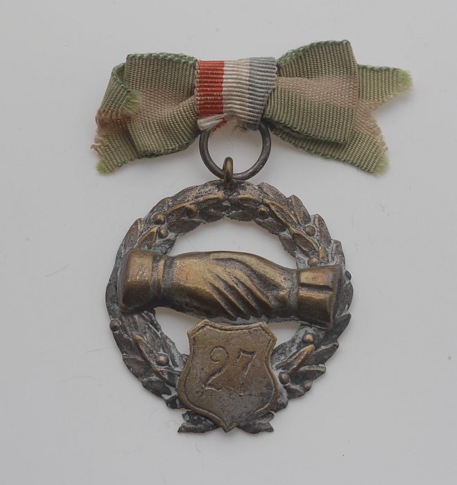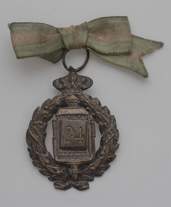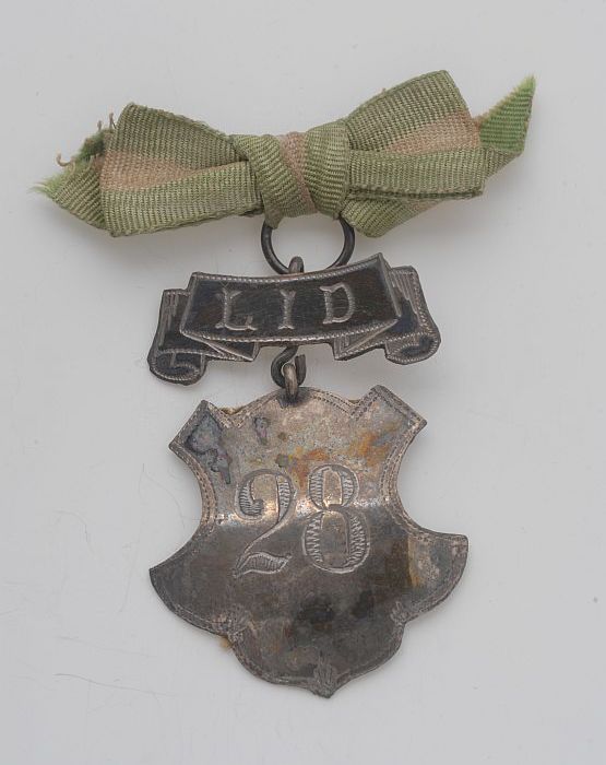 Medaille aan groen-wit-groen lint, spuit "28" en "LID"