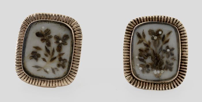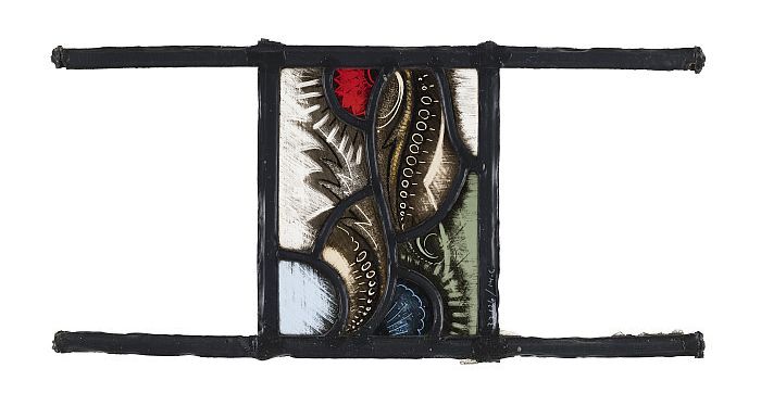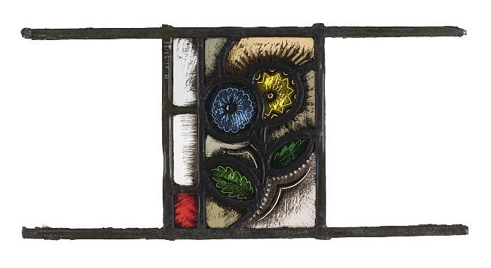 Getoogd glas-in-loodraam met bloemen en golfjes, mid...