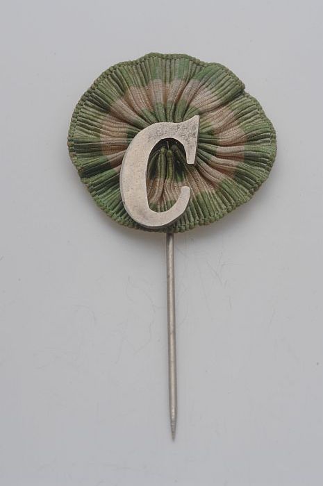 Speld met groen-wit-groen strik en recht plaatje, "1...