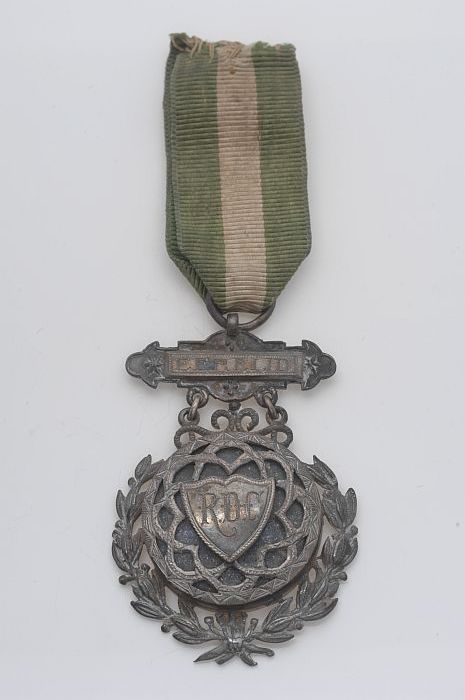 Medaille aan groen-wit-groen lint, met "R.V.B." op g...
