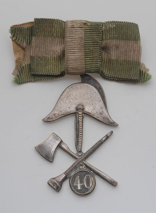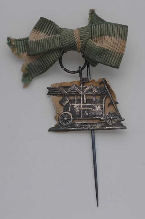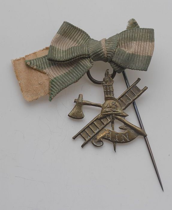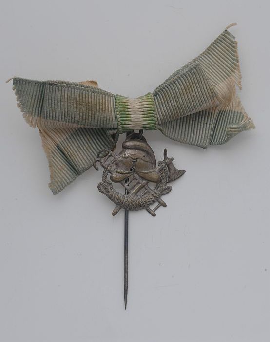 Speld aan groen-wit-groen lint, banier met brandweer...