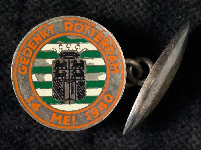 Metalen insigne aan kettinkje "GEDENKT ROTTERDAM 14 ...