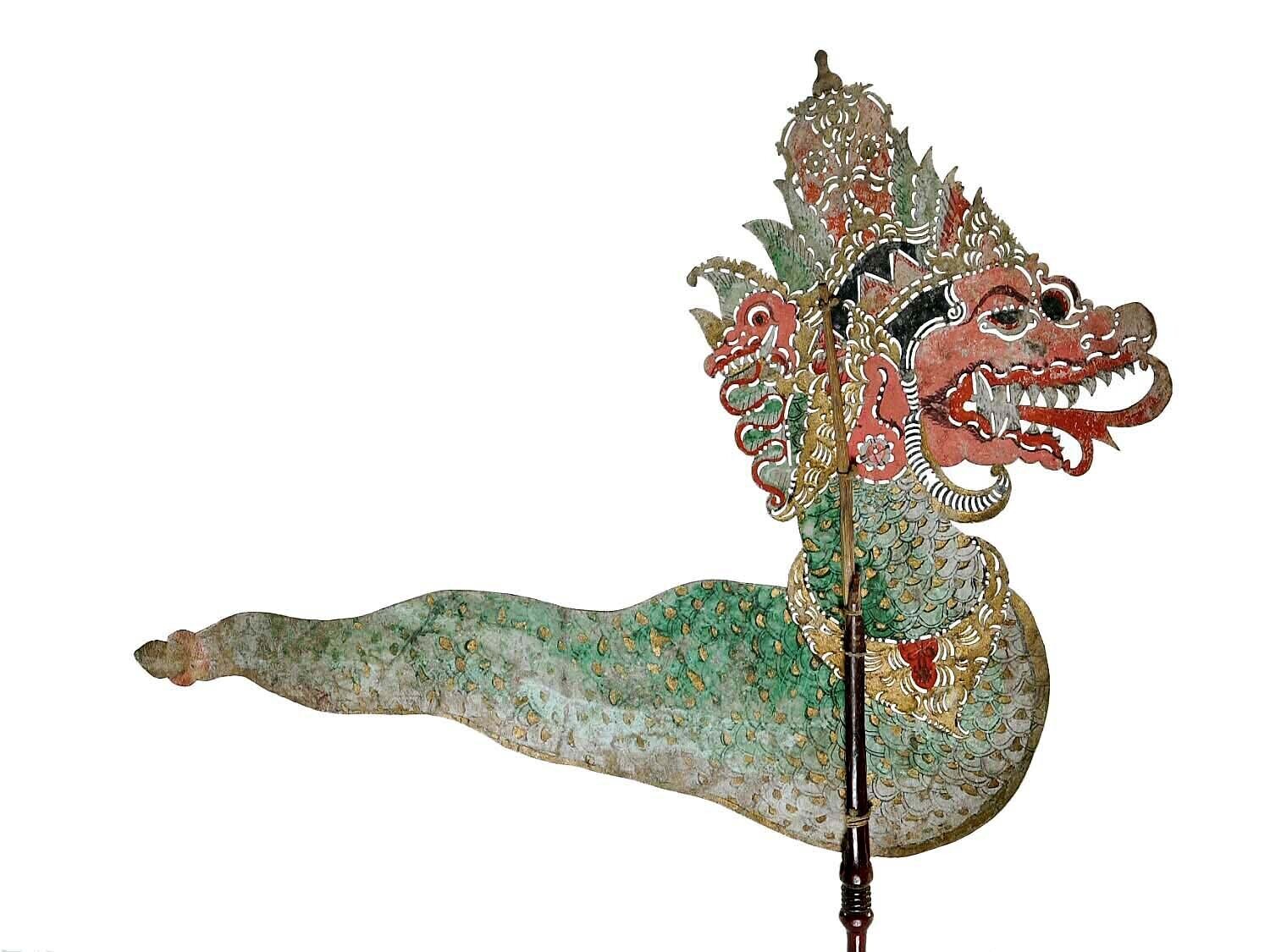 Wajangfiguur, een draak met vissenlichaam voorstellend