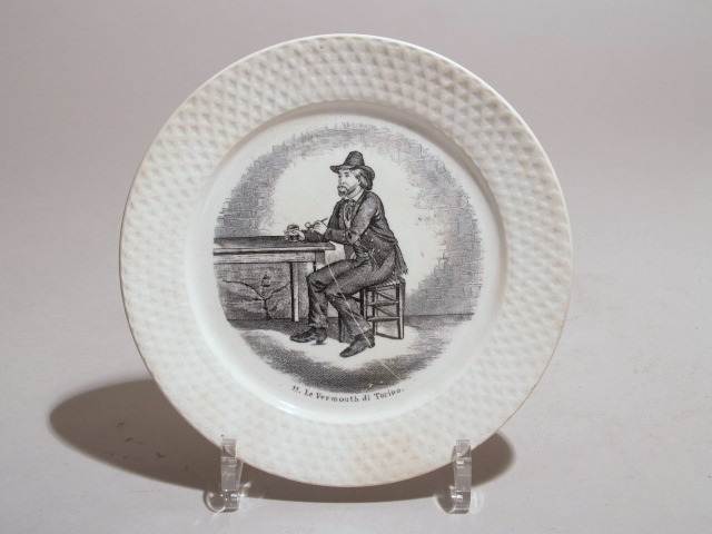 Bord met zwartwit decor van vermouth drinkende man
