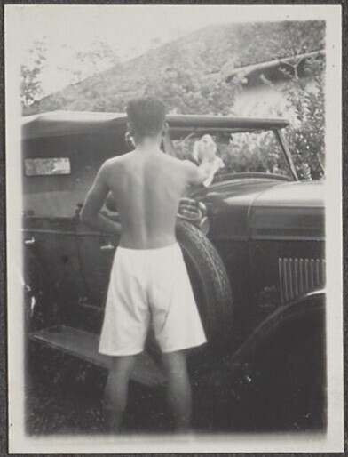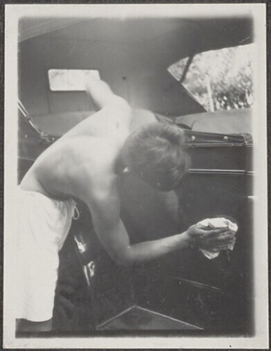 Het wassen van de auto van de familie C.H. Japing in...