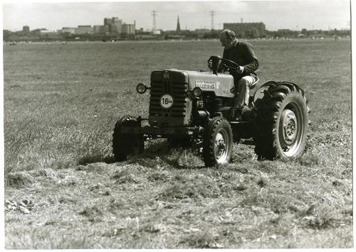 Foto in zwart-wit van een tractor door Paul Vogt, 1974