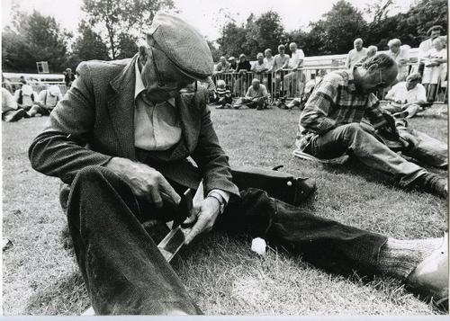 Foto in zwart-wit van een wedstrijd zeis haren door ...