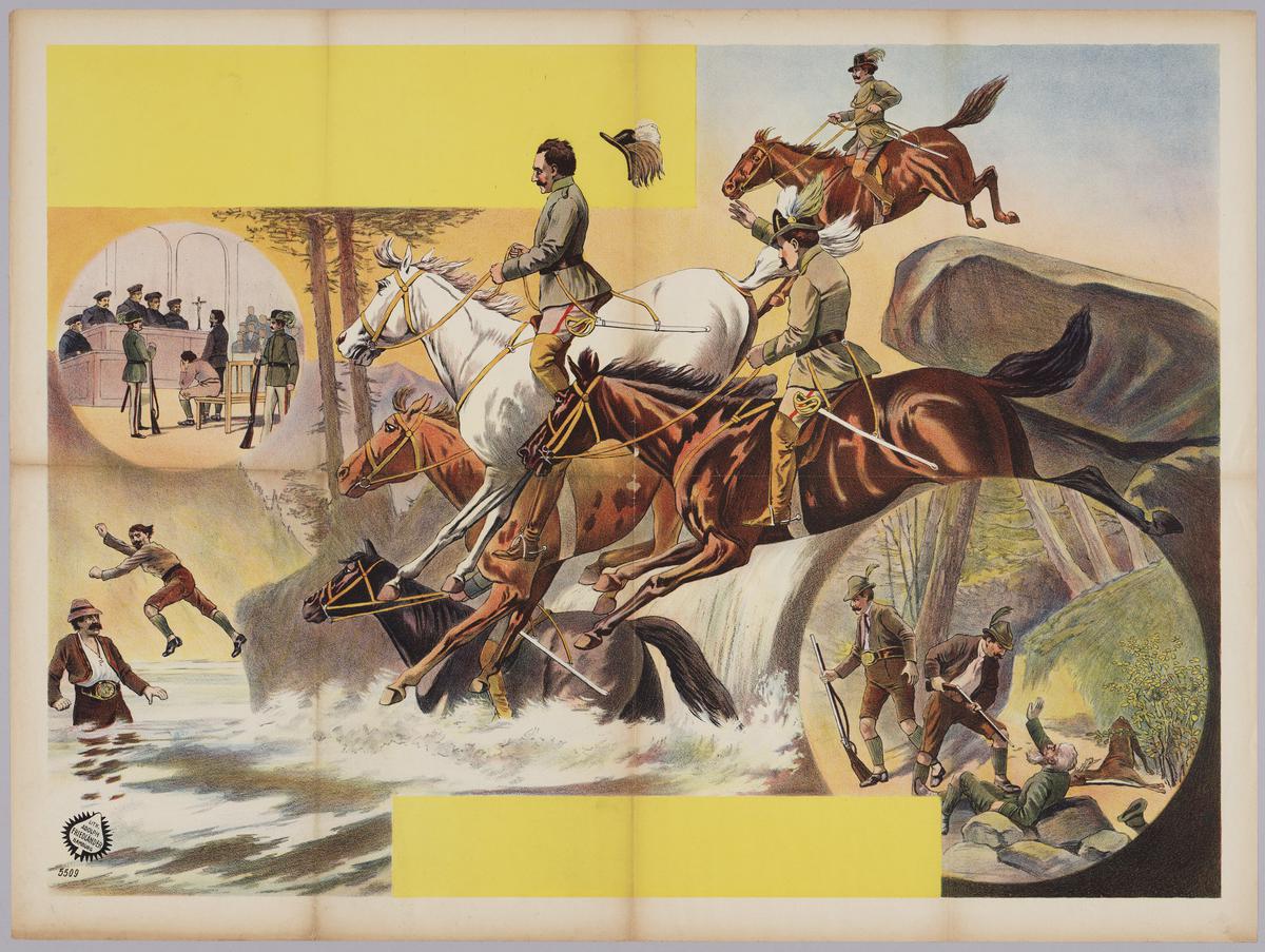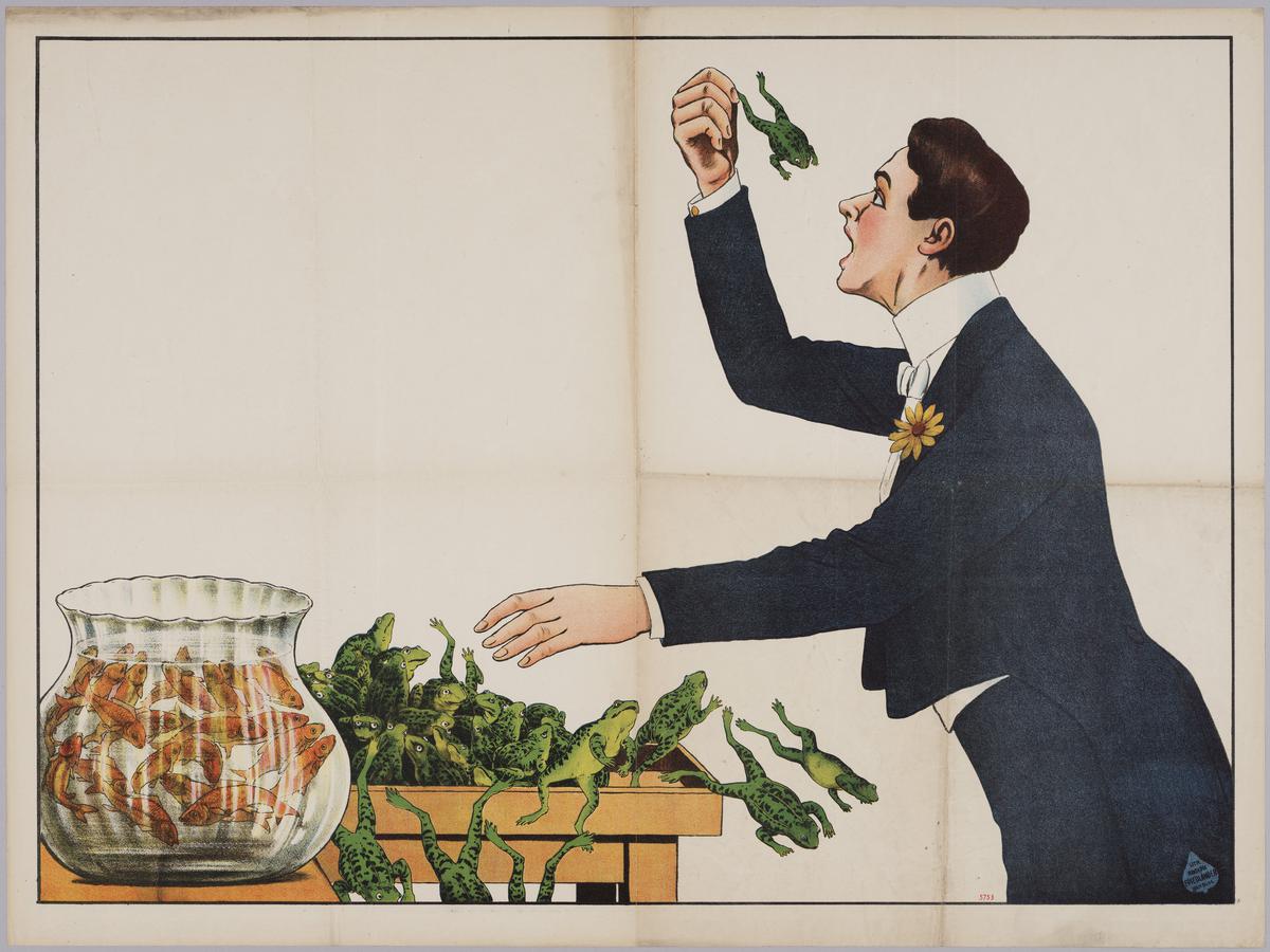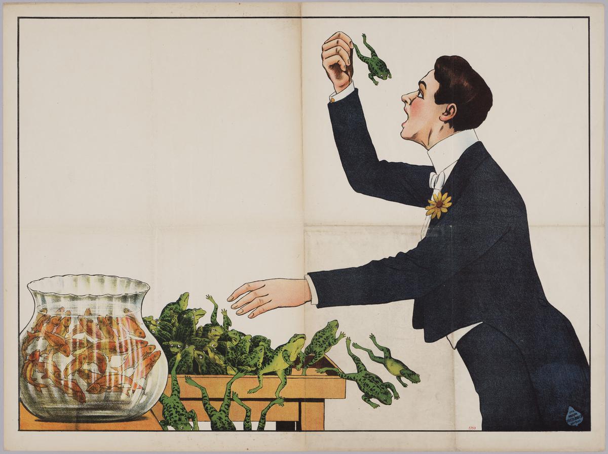 Bros Zachs. Boeienkoning in kooi die door twee manne...