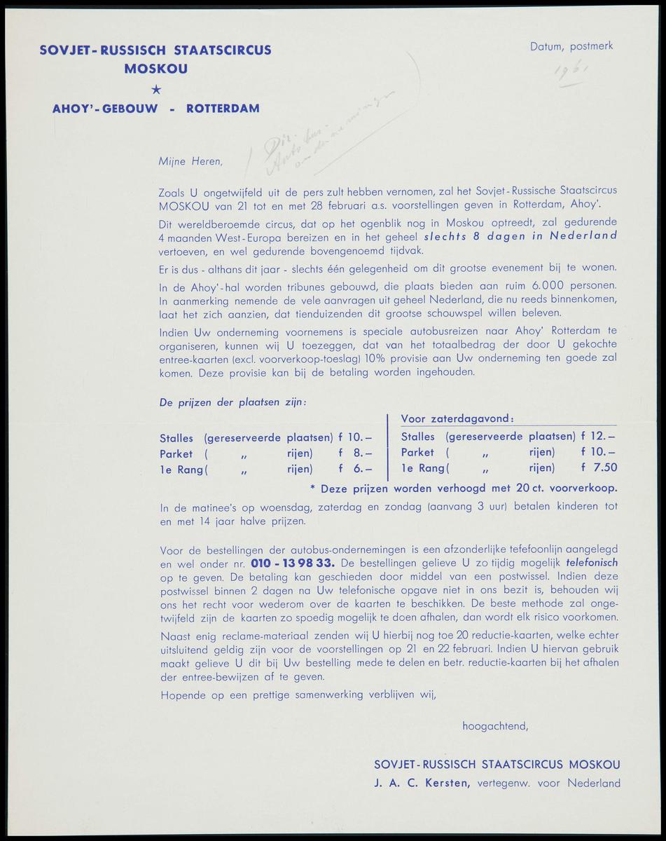 Reclamefolder Sovjet-Russisch Staatscircus Moskou, A...