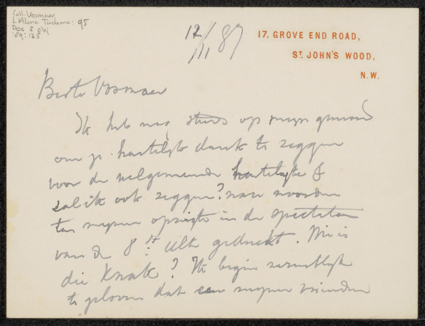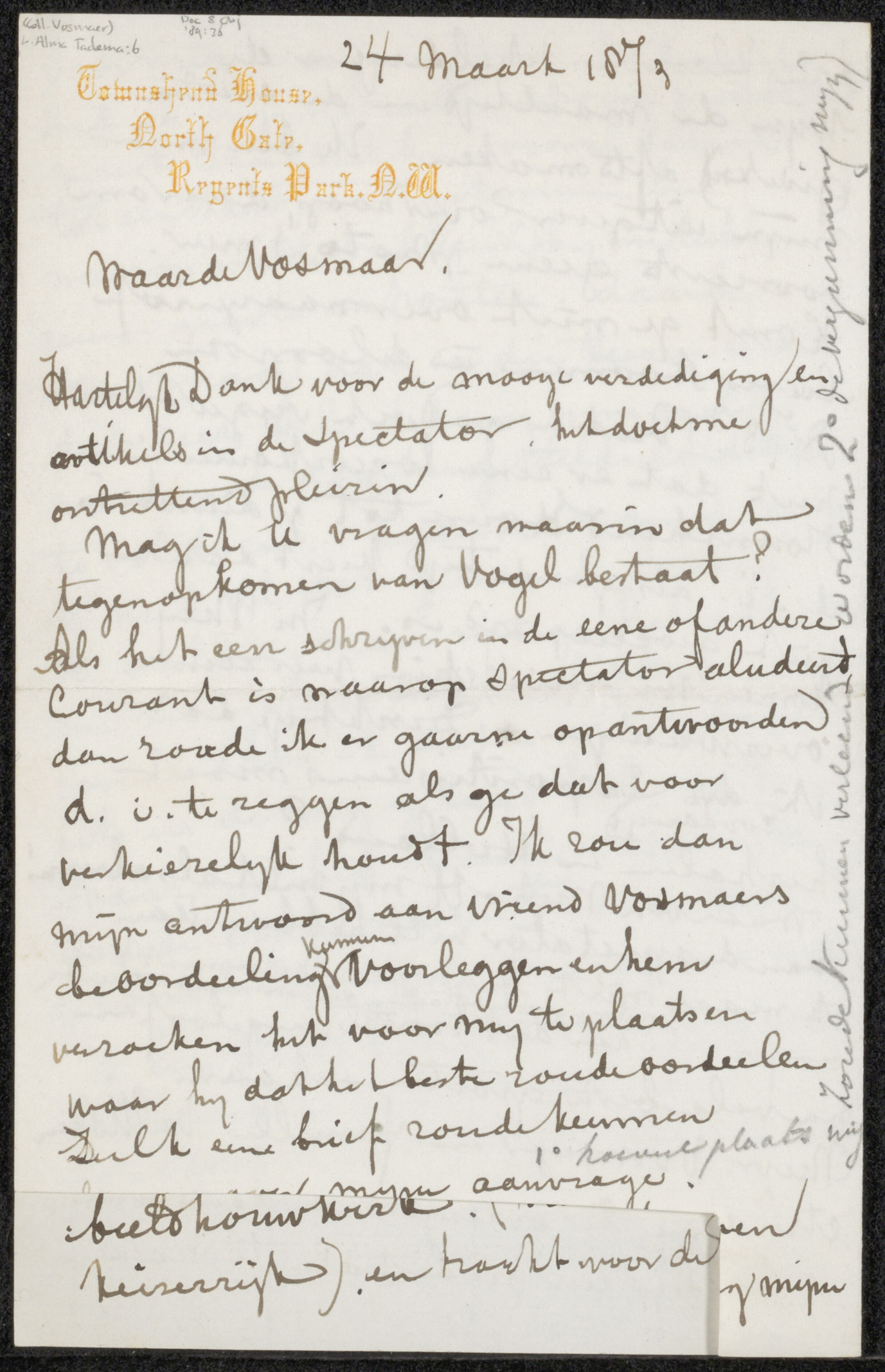 Brief aan de heer Vosmaer
