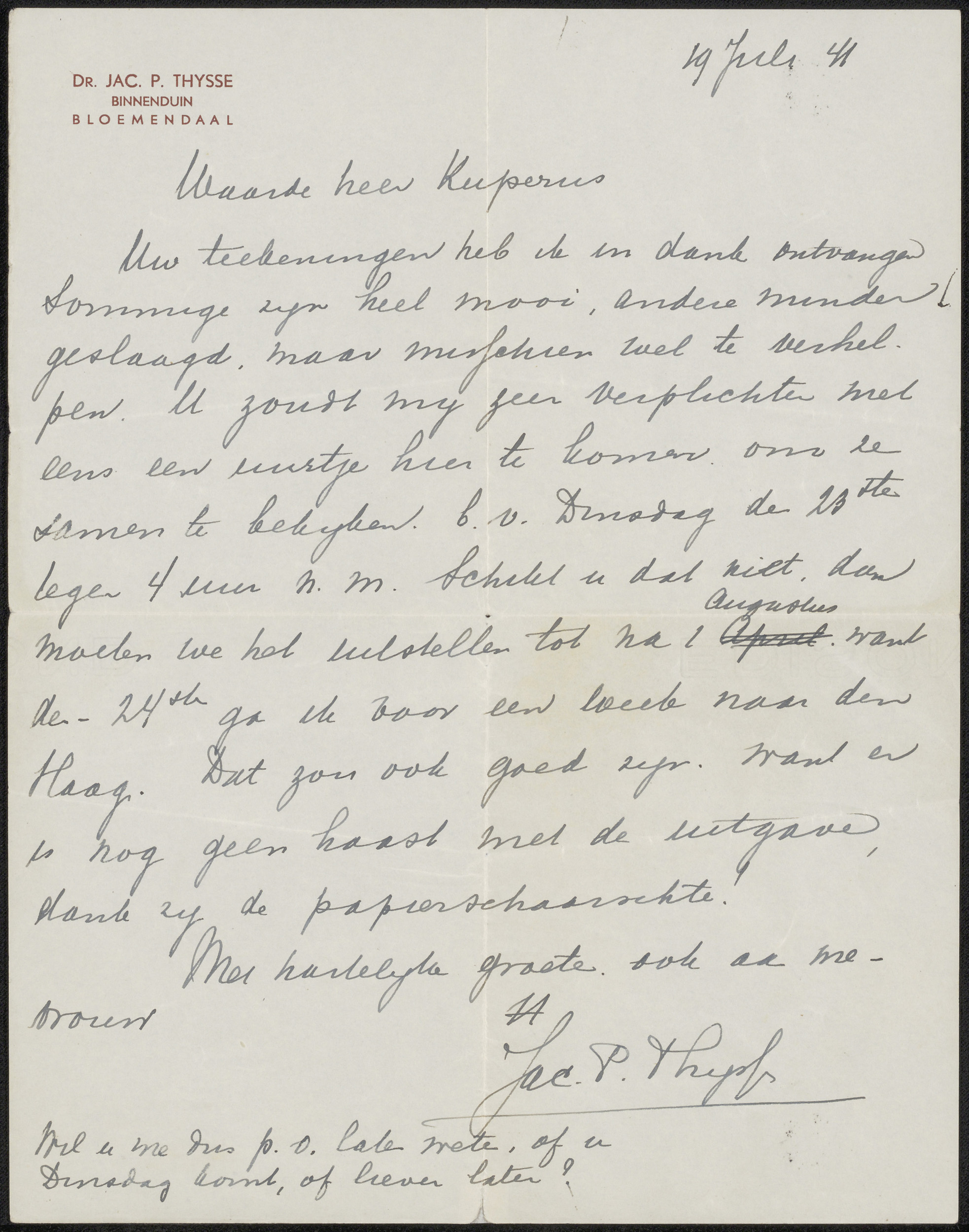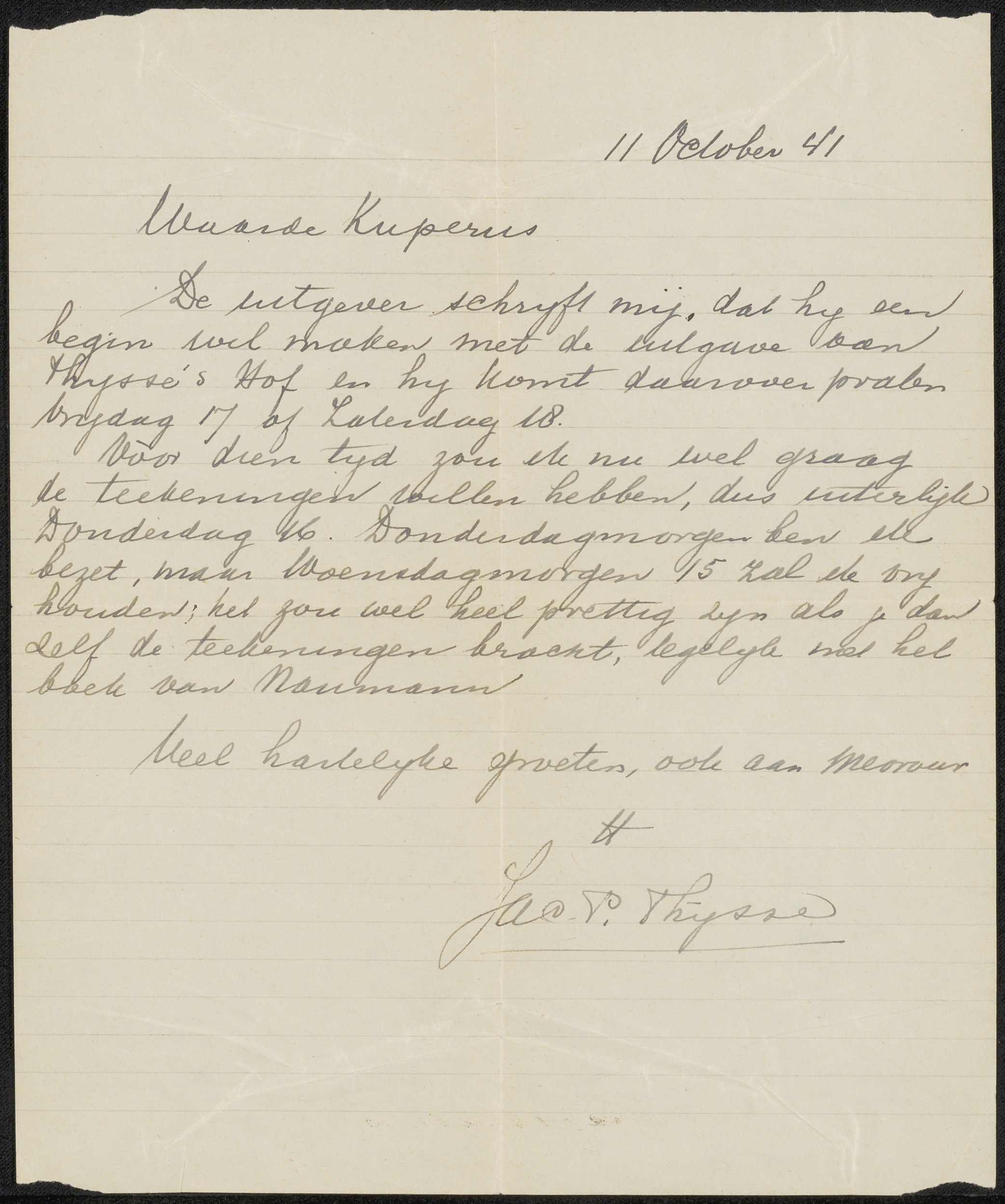 Brief aan Sjoerd Kuperus