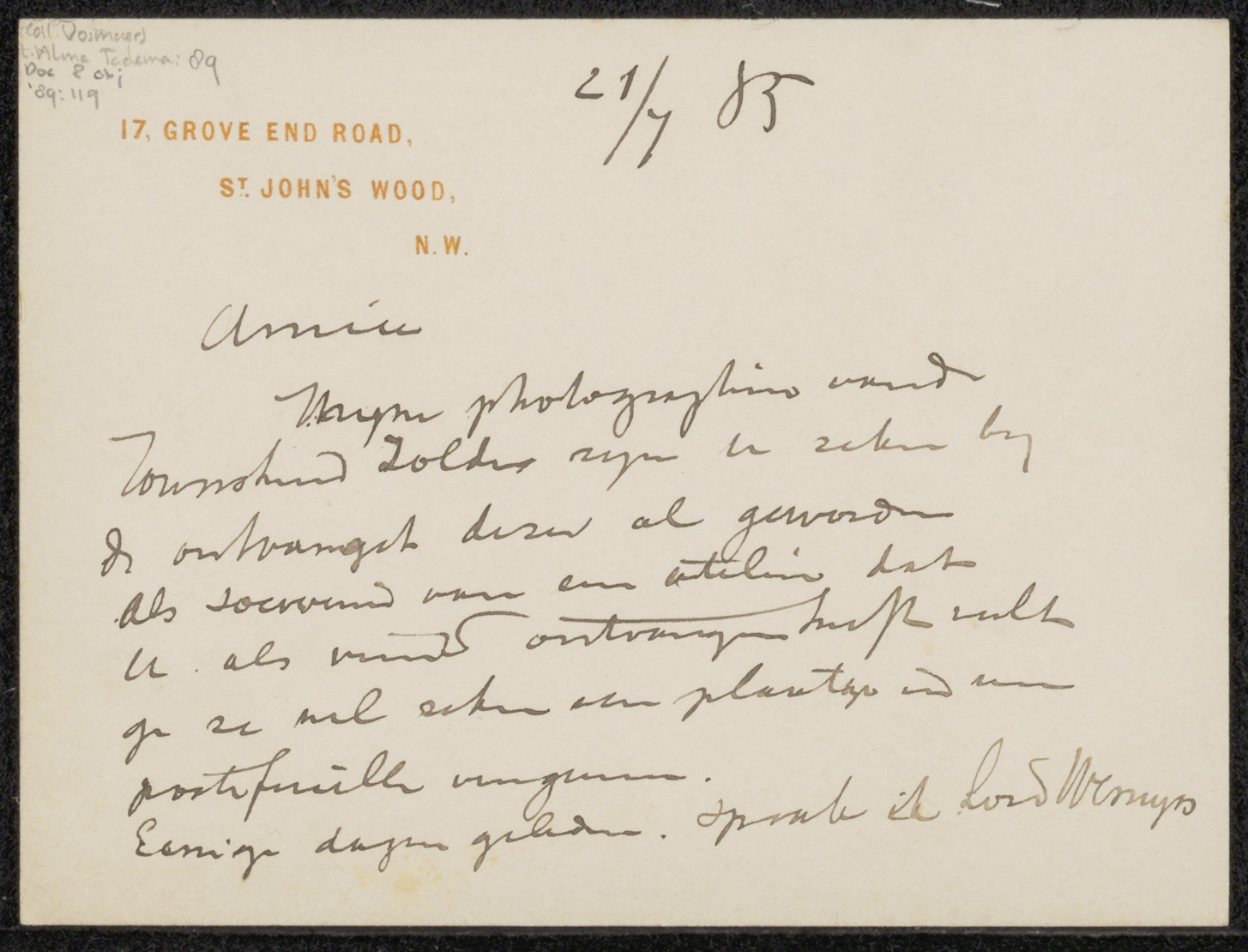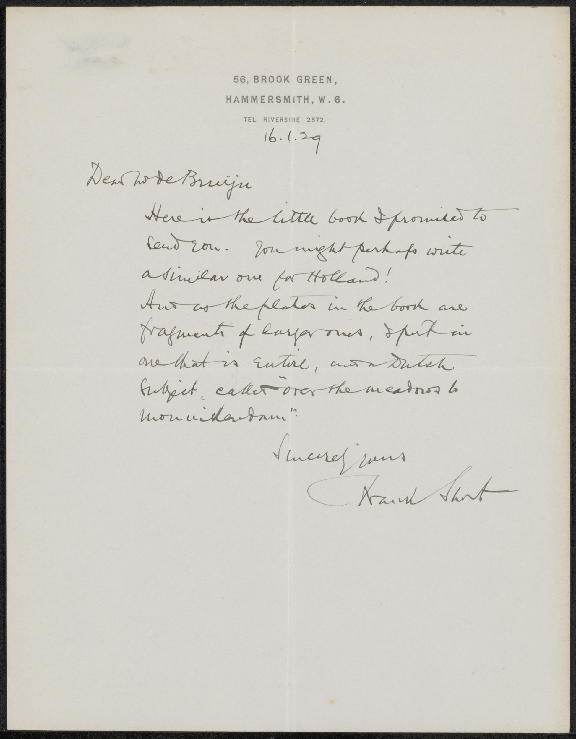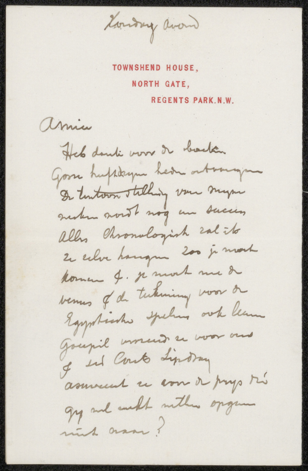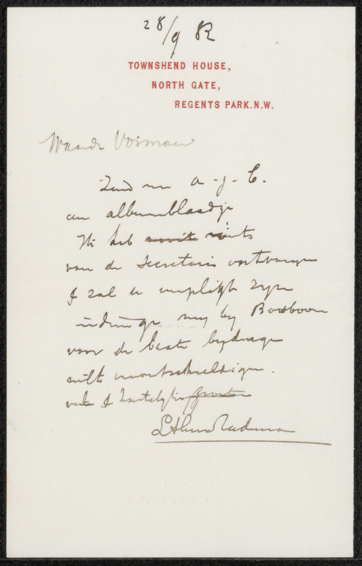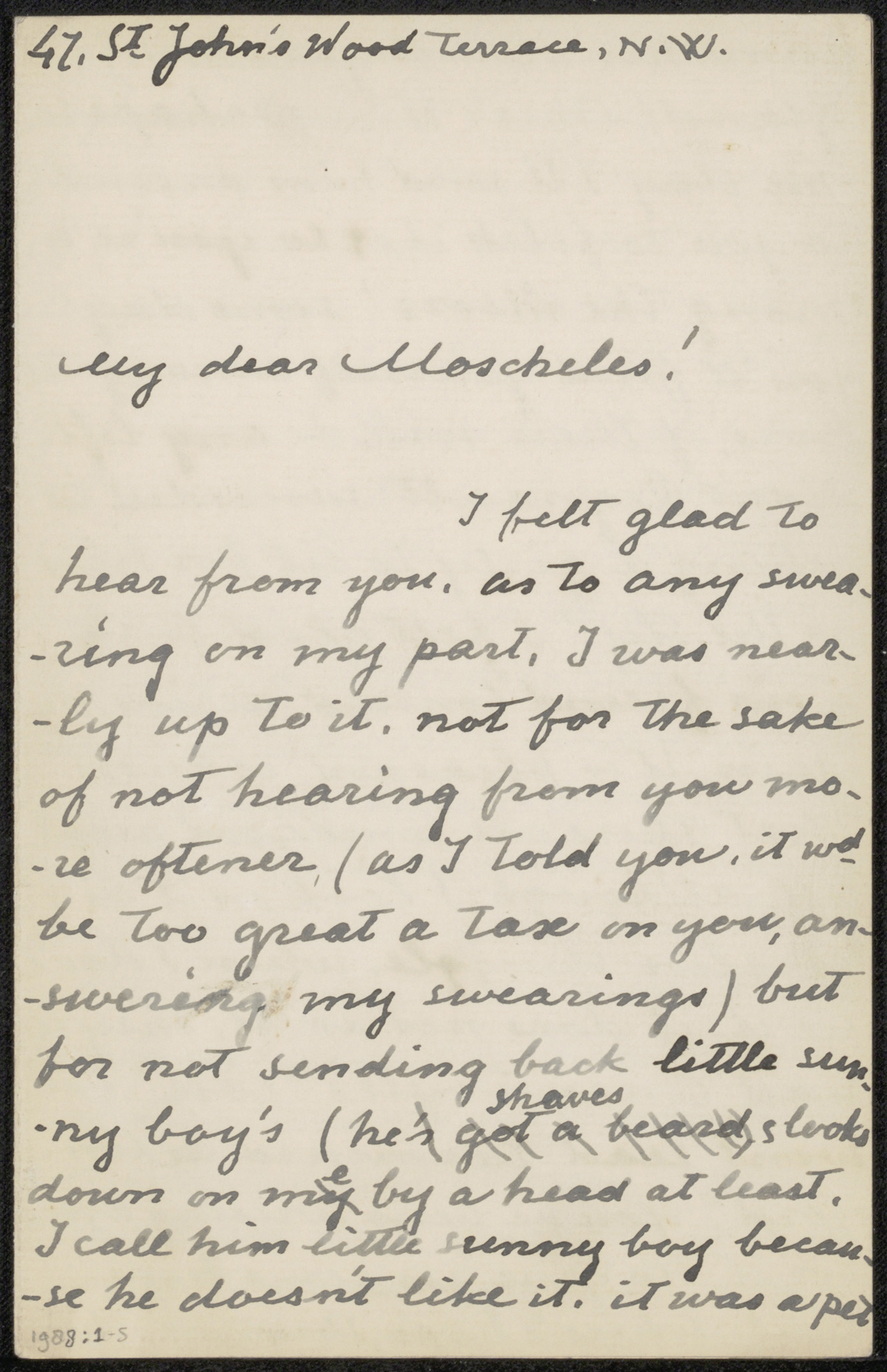 Brief aan Felix Stone Moscheles