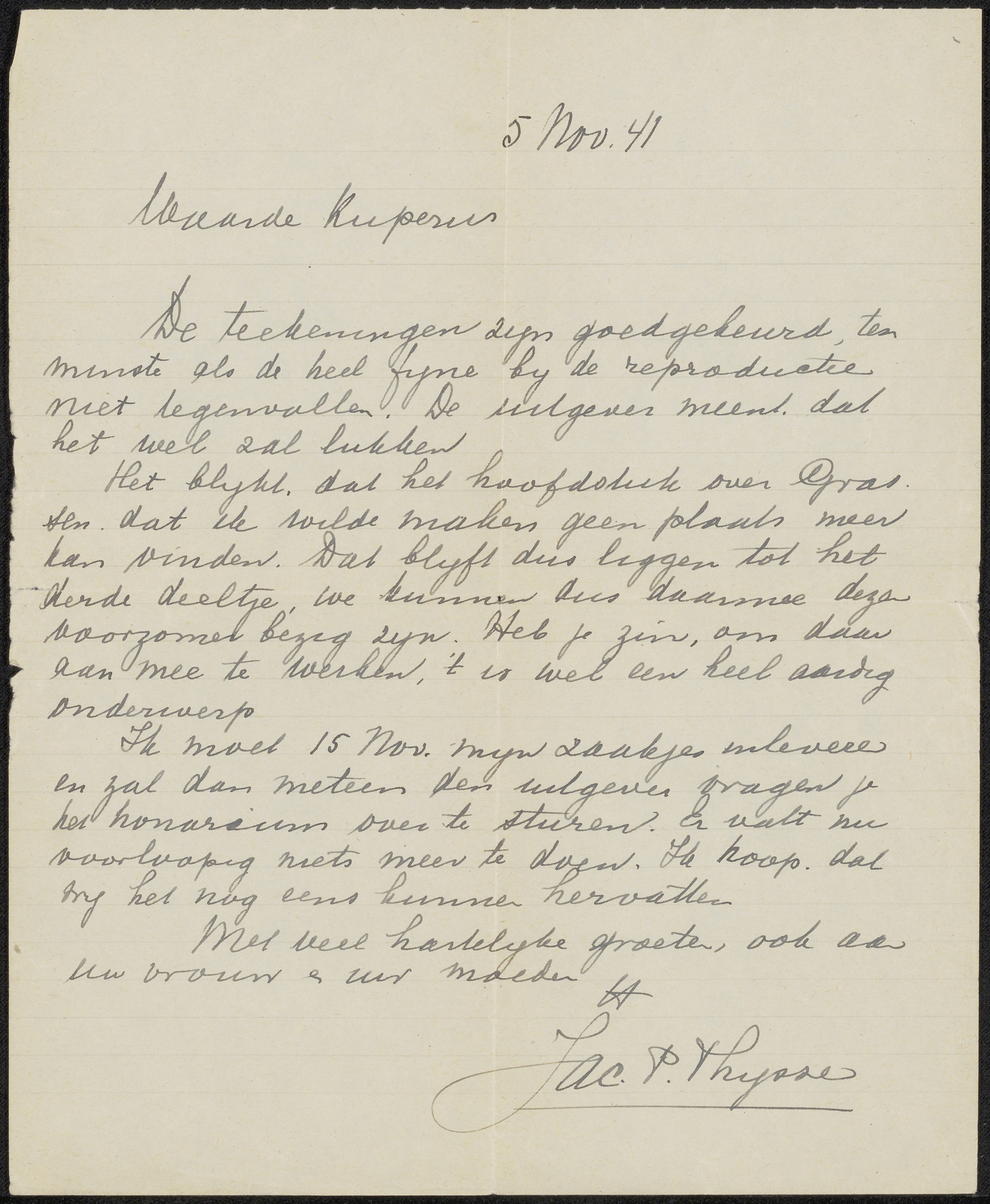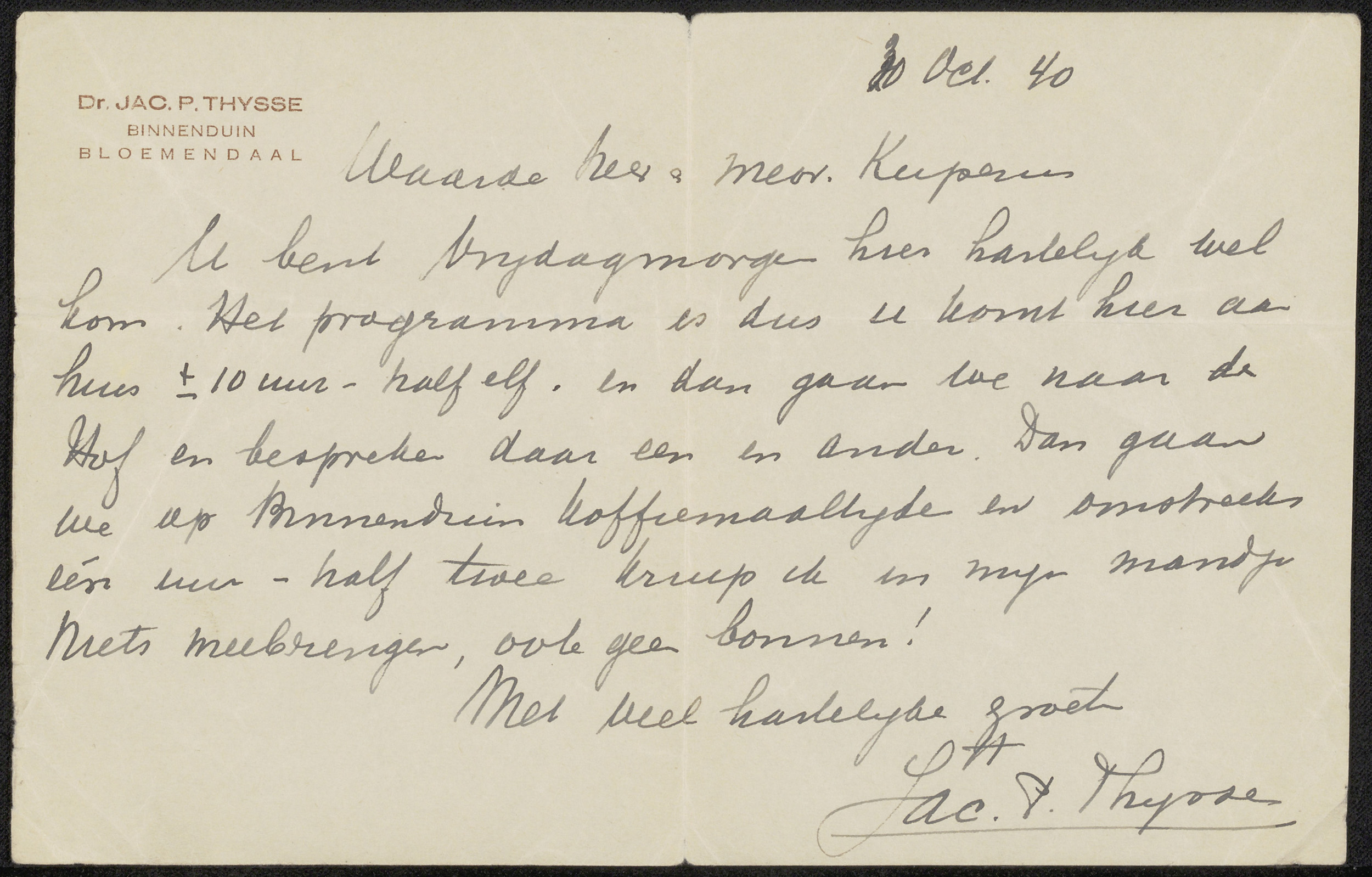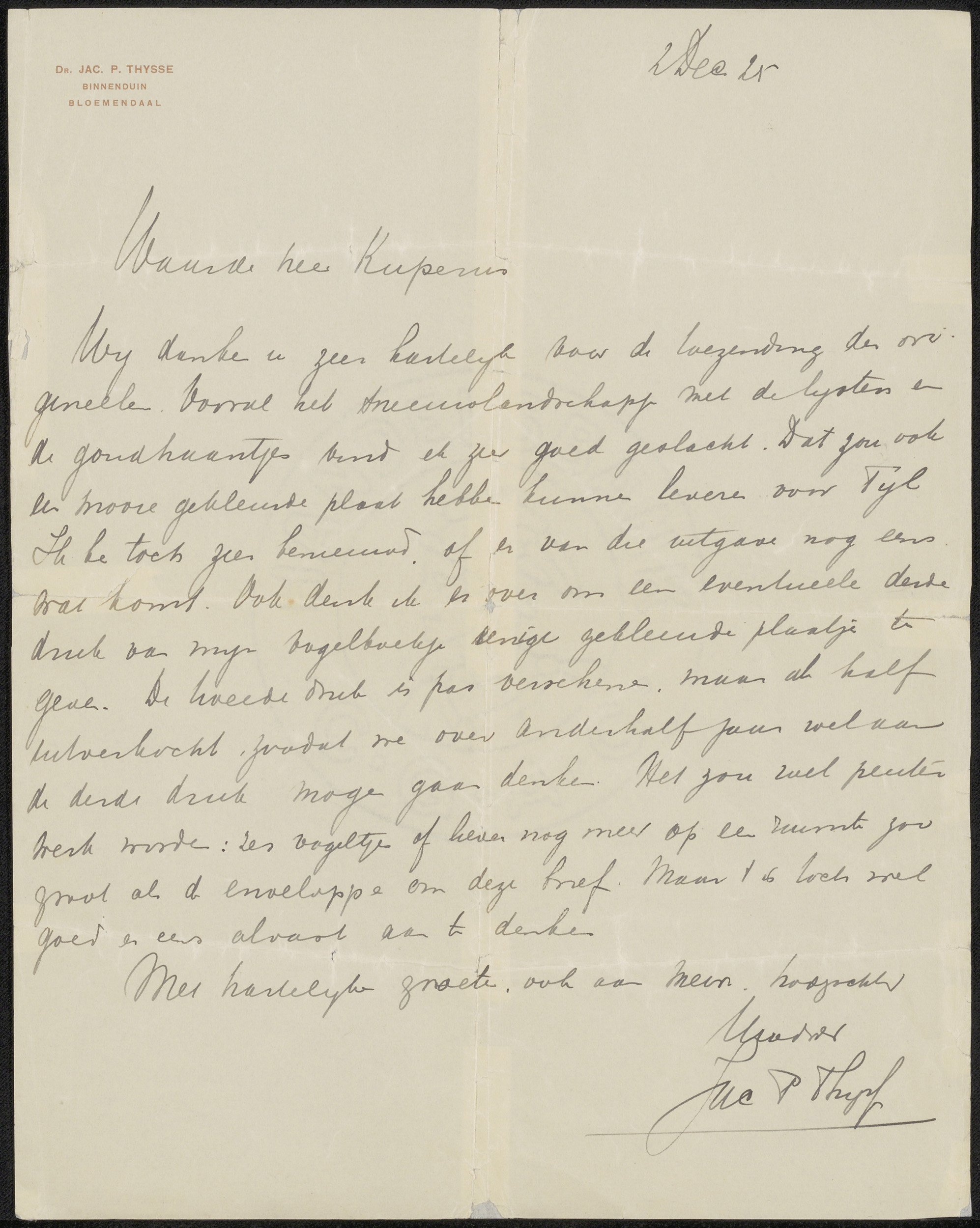Brief aan Sjoerd Kuperus en mevrouw Kuperus