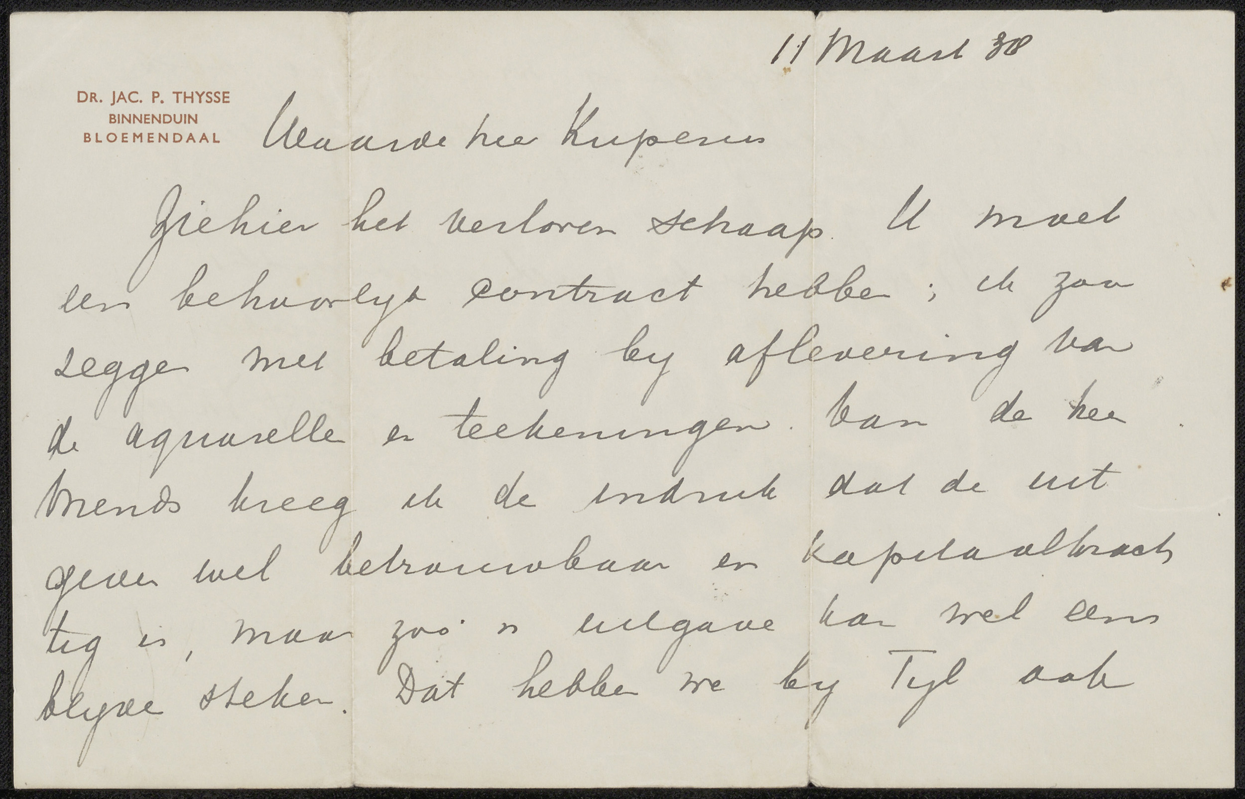Brief aan Felicien Bobeldijk