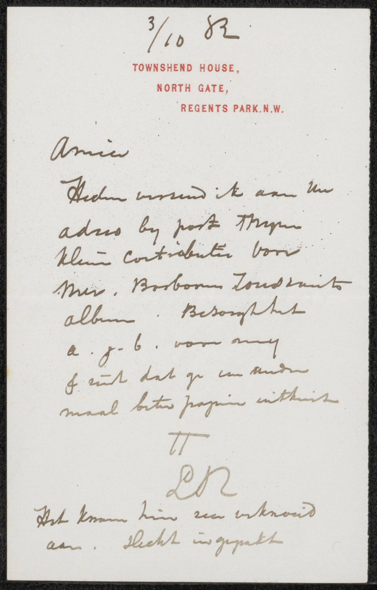 Brief aan Felix Stone Moscheles en mevrouw Moscheles