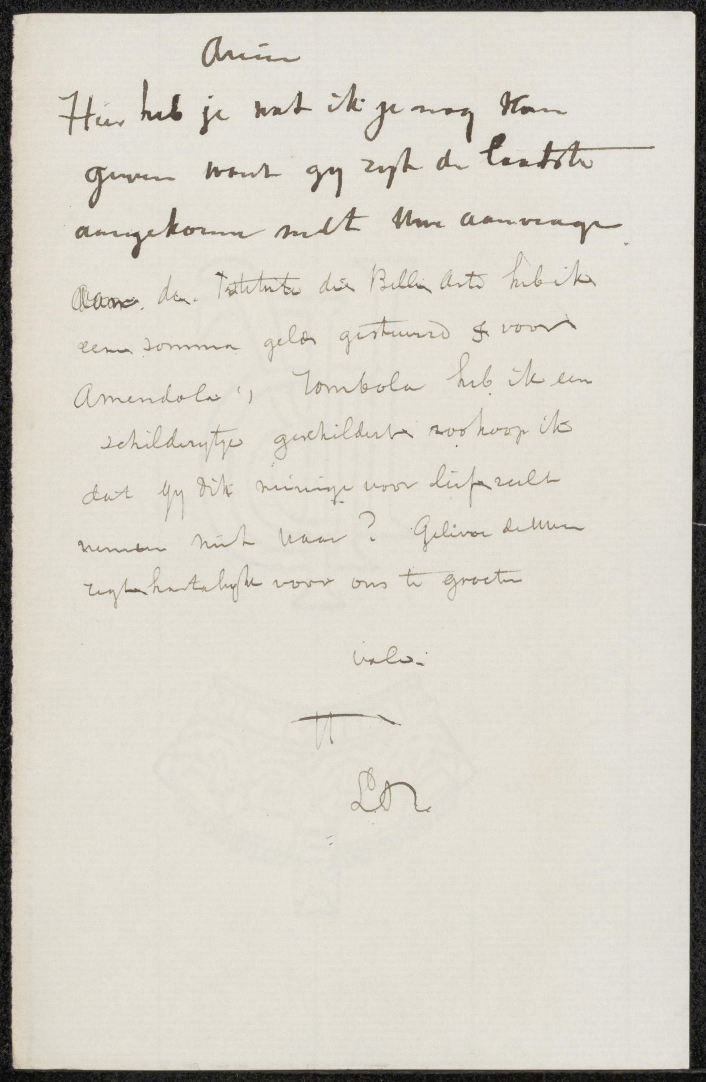 Brief aan Ina van Eibergen Santhagens-Waller