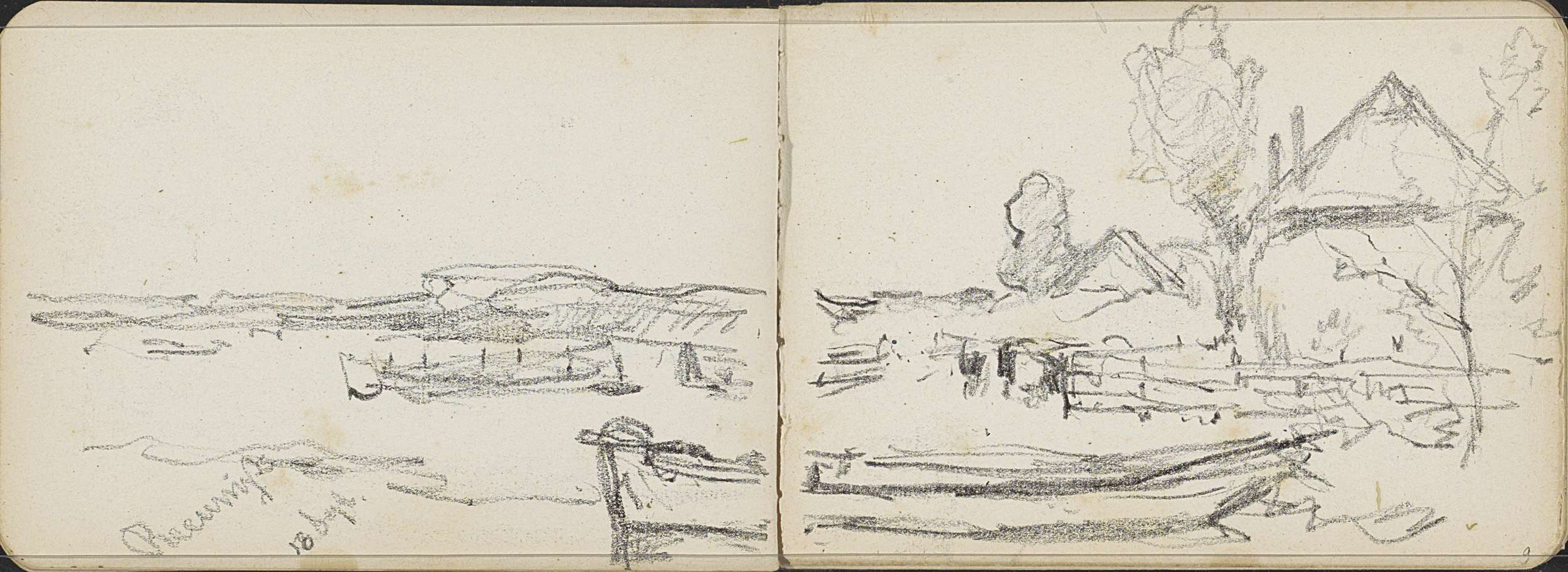 Aangemeerde roeiboten aan een waterkant te Reeuwijk