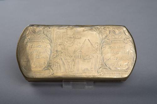 Messing tabaksdoos met gegraveerde voorstelling