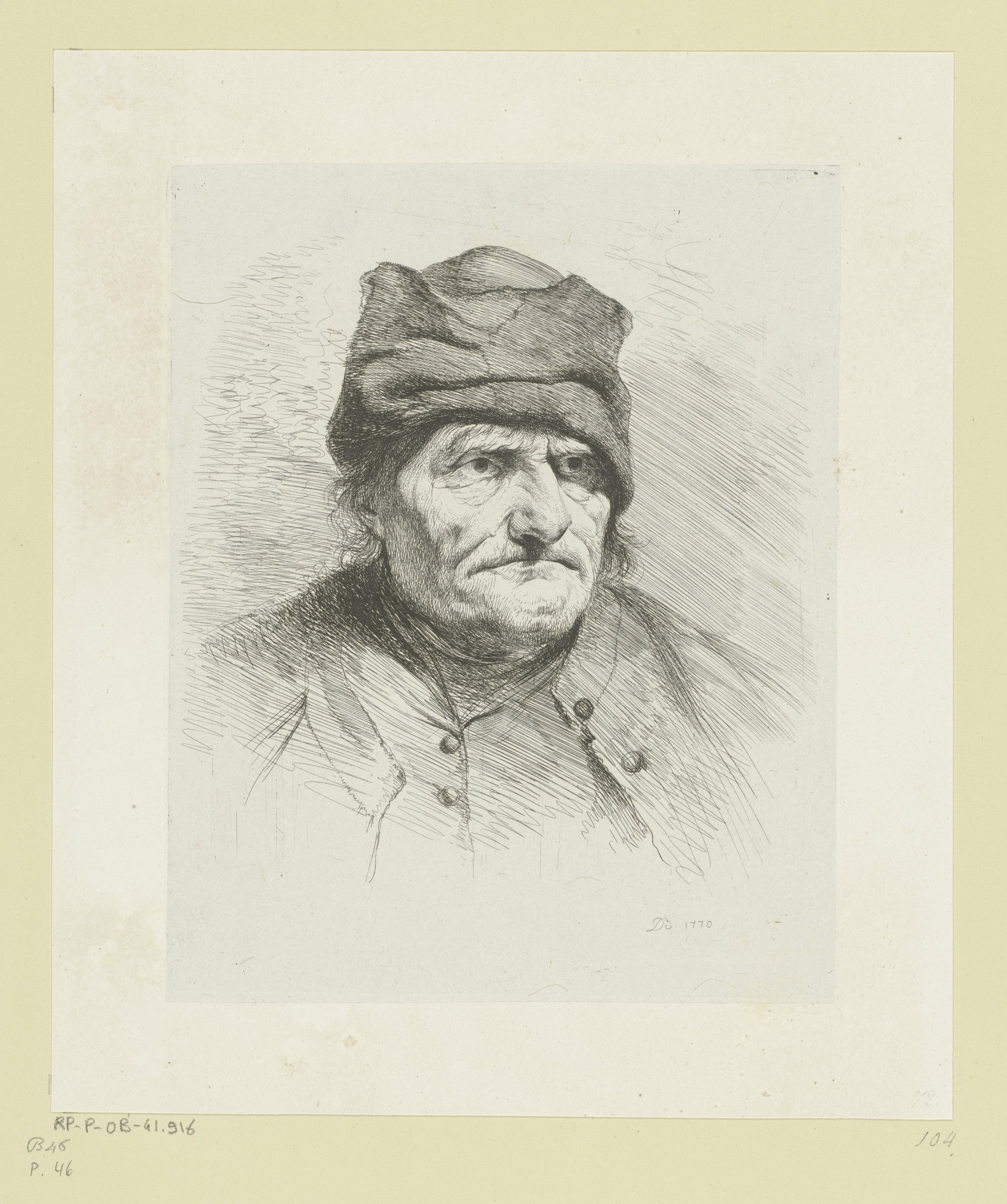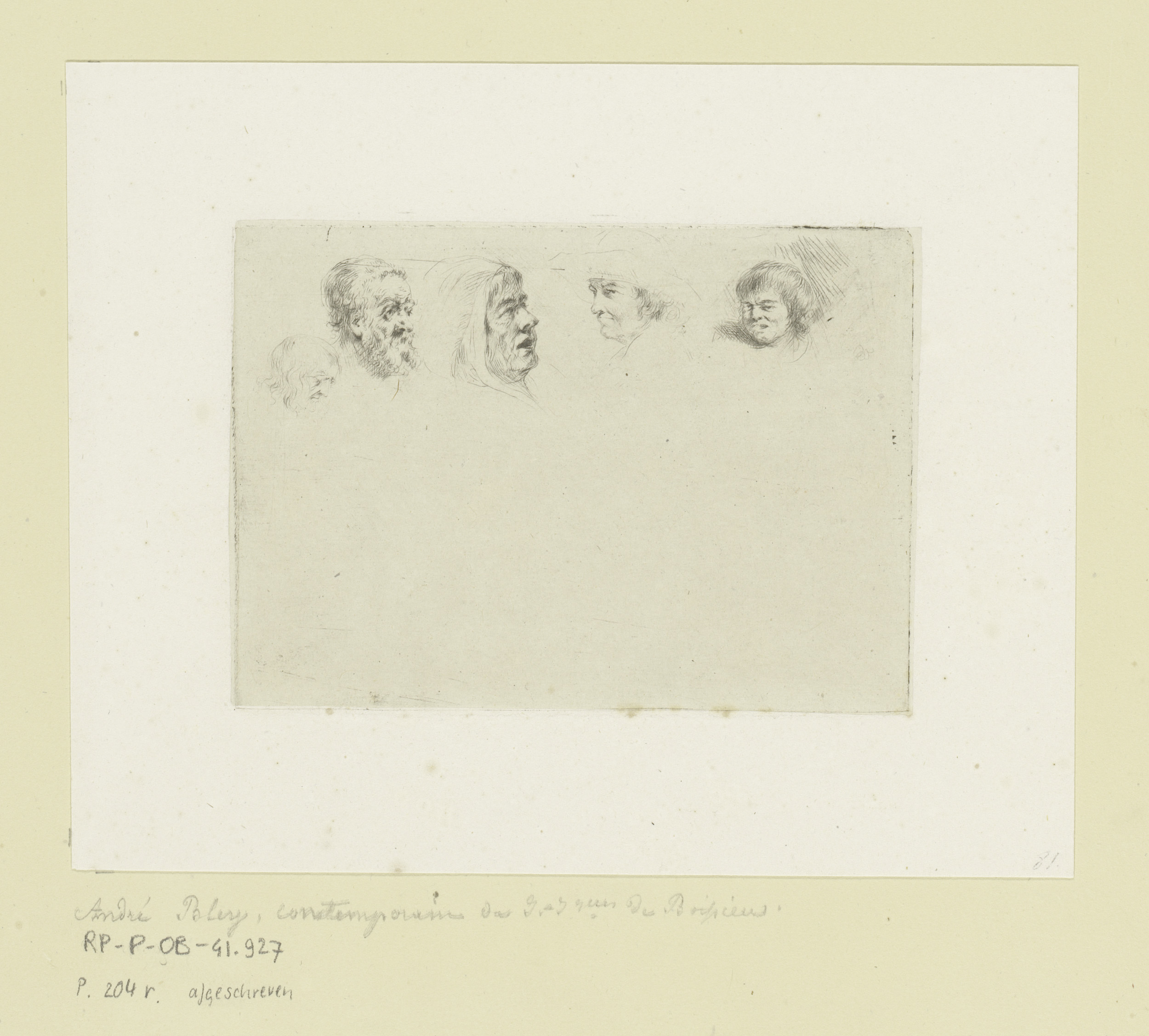 Compositie met vijf mannenhoofden, een hondenkop en ...
