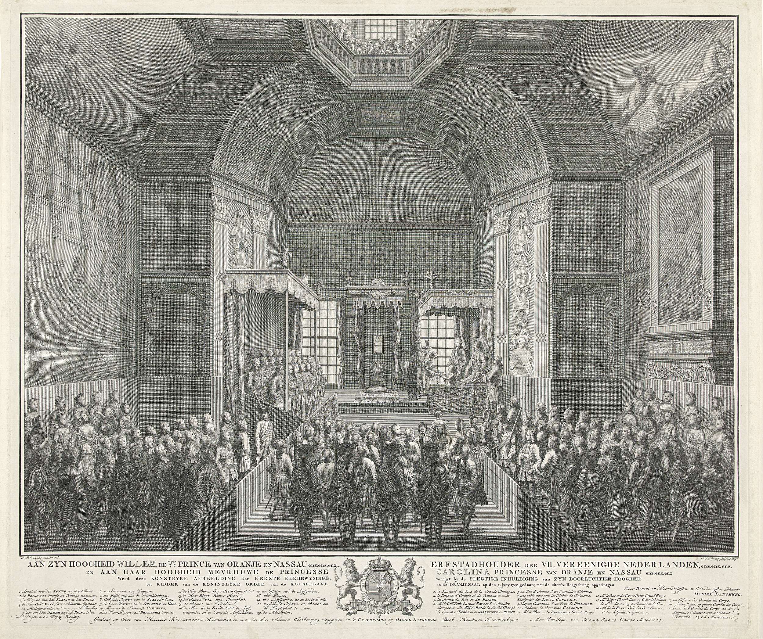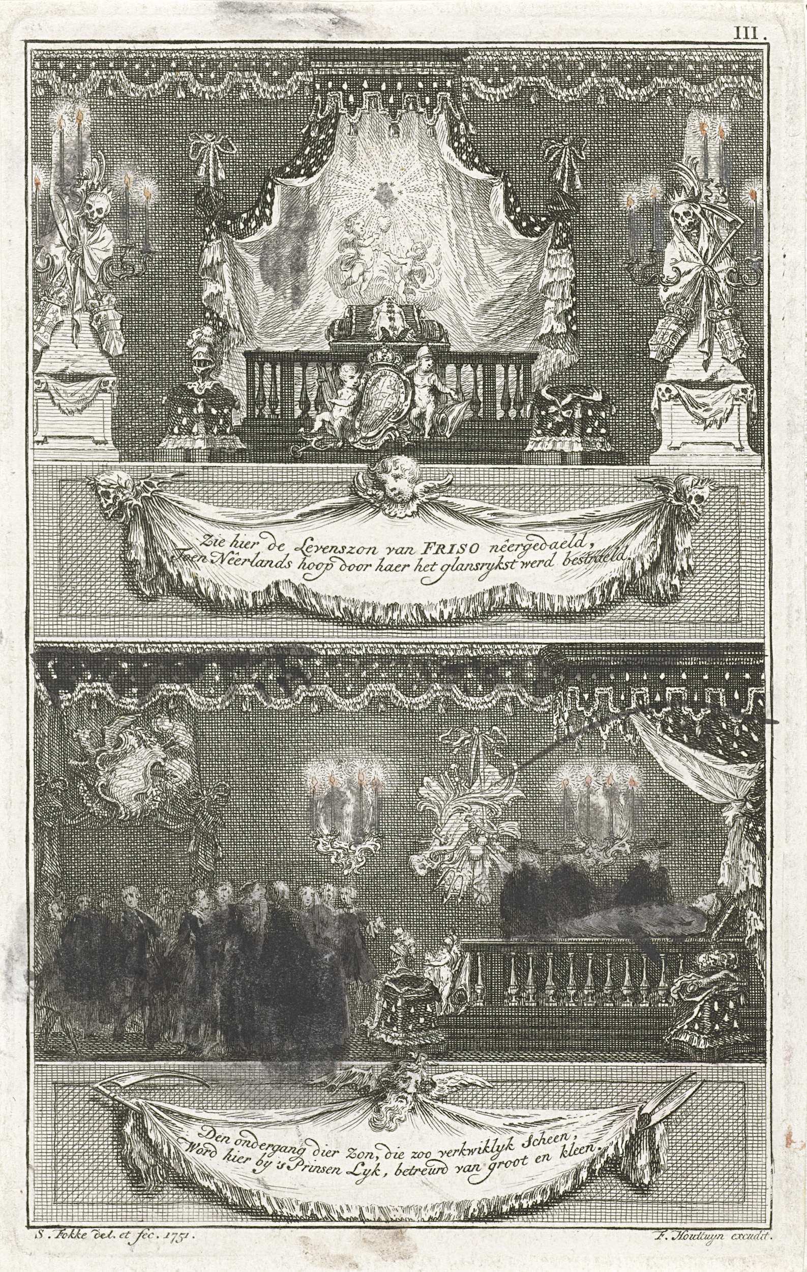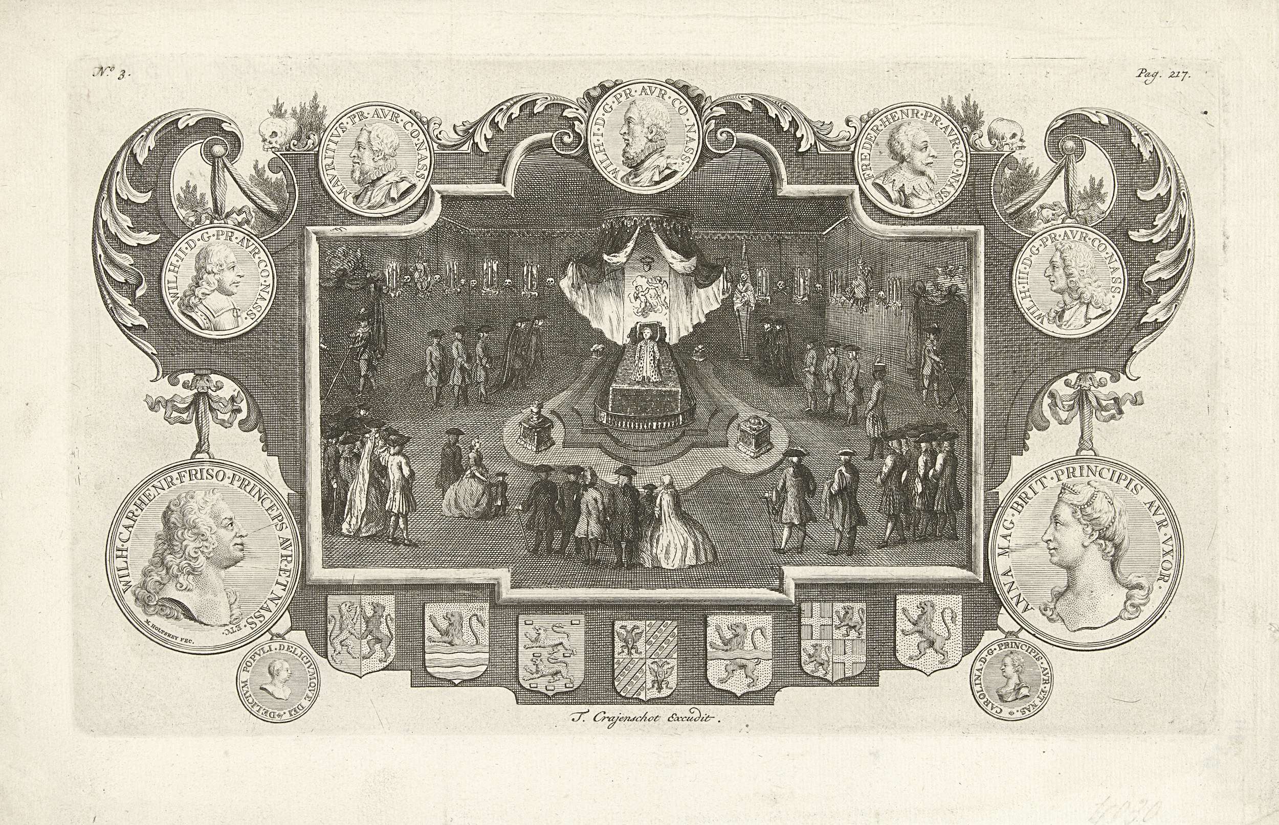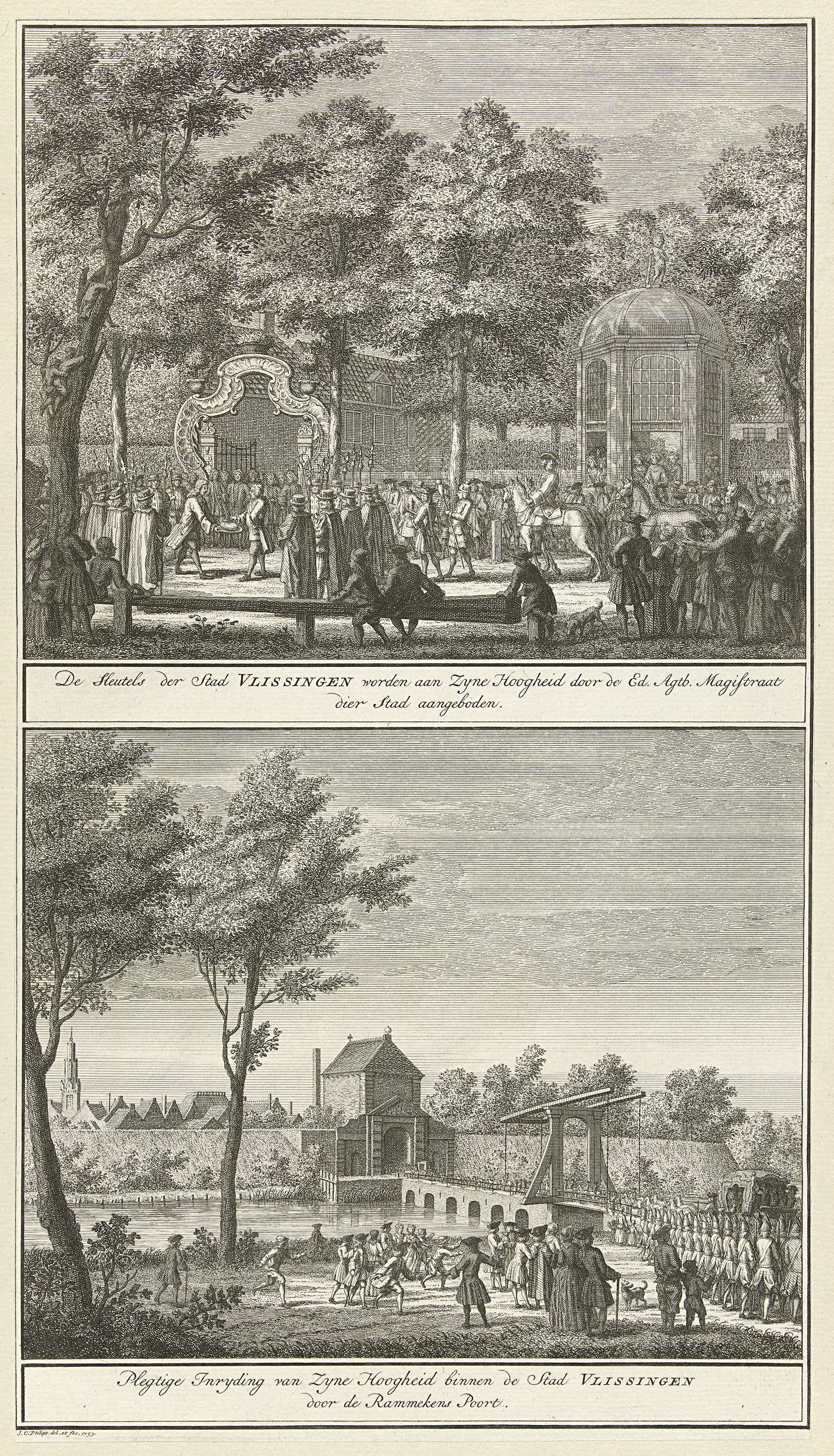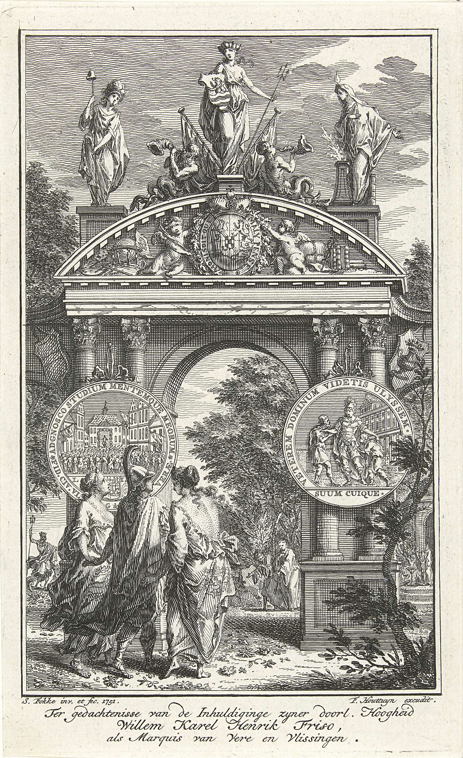 Allegorie op de inhuldiging van Willem IV te Veere e...