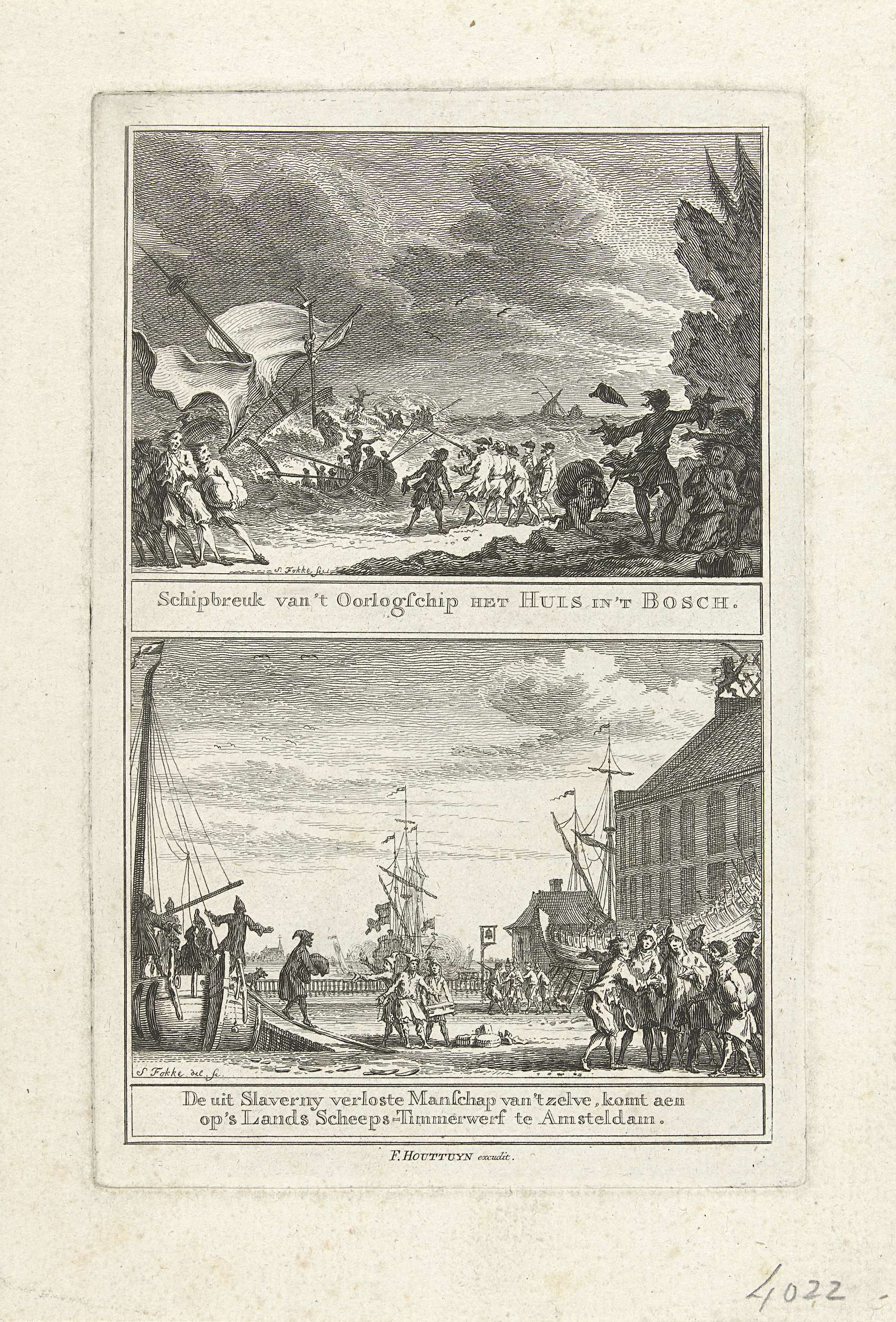 Schipbreuk van het oorlogsschip Huis in 't Bosch voo...