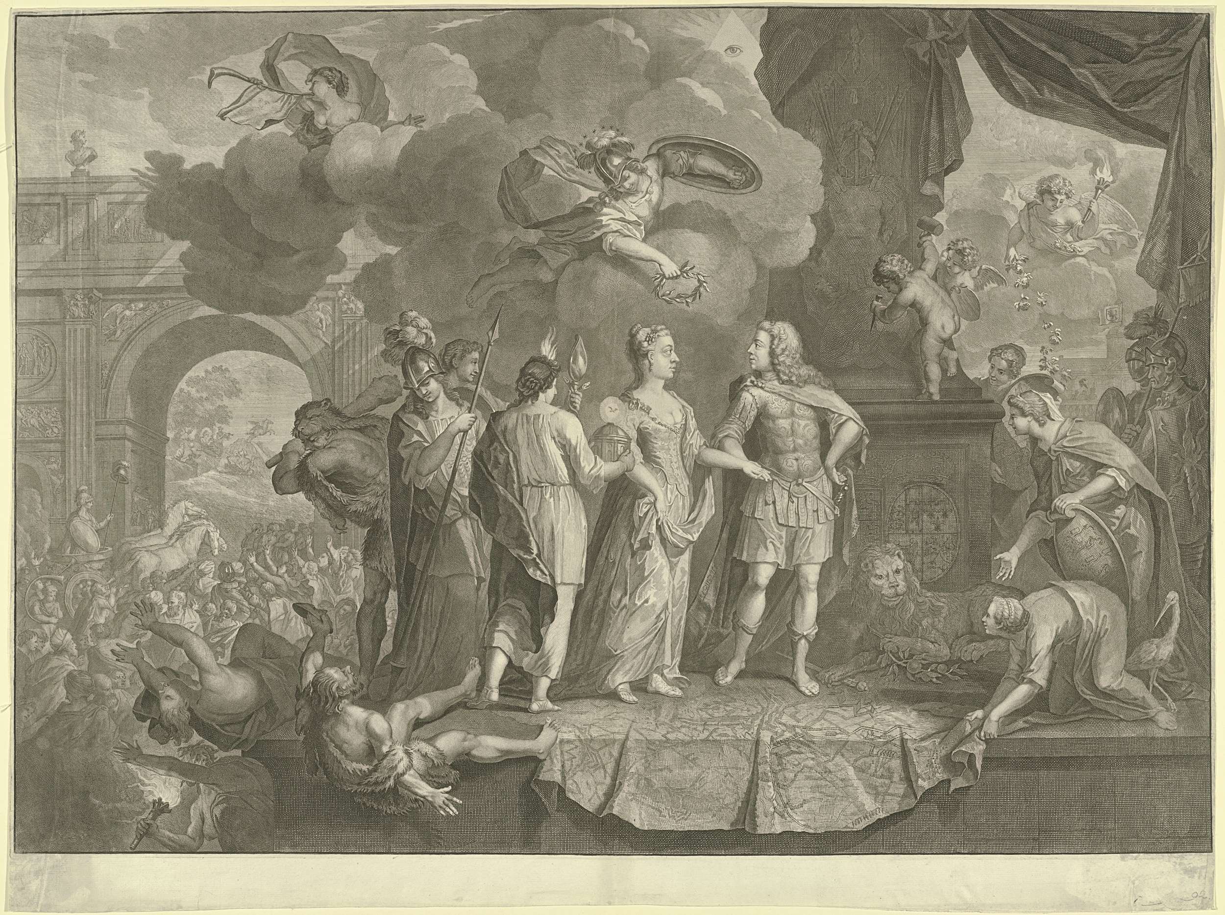 Allegorie op het huwelijk van prins Willem IV en Ann...
