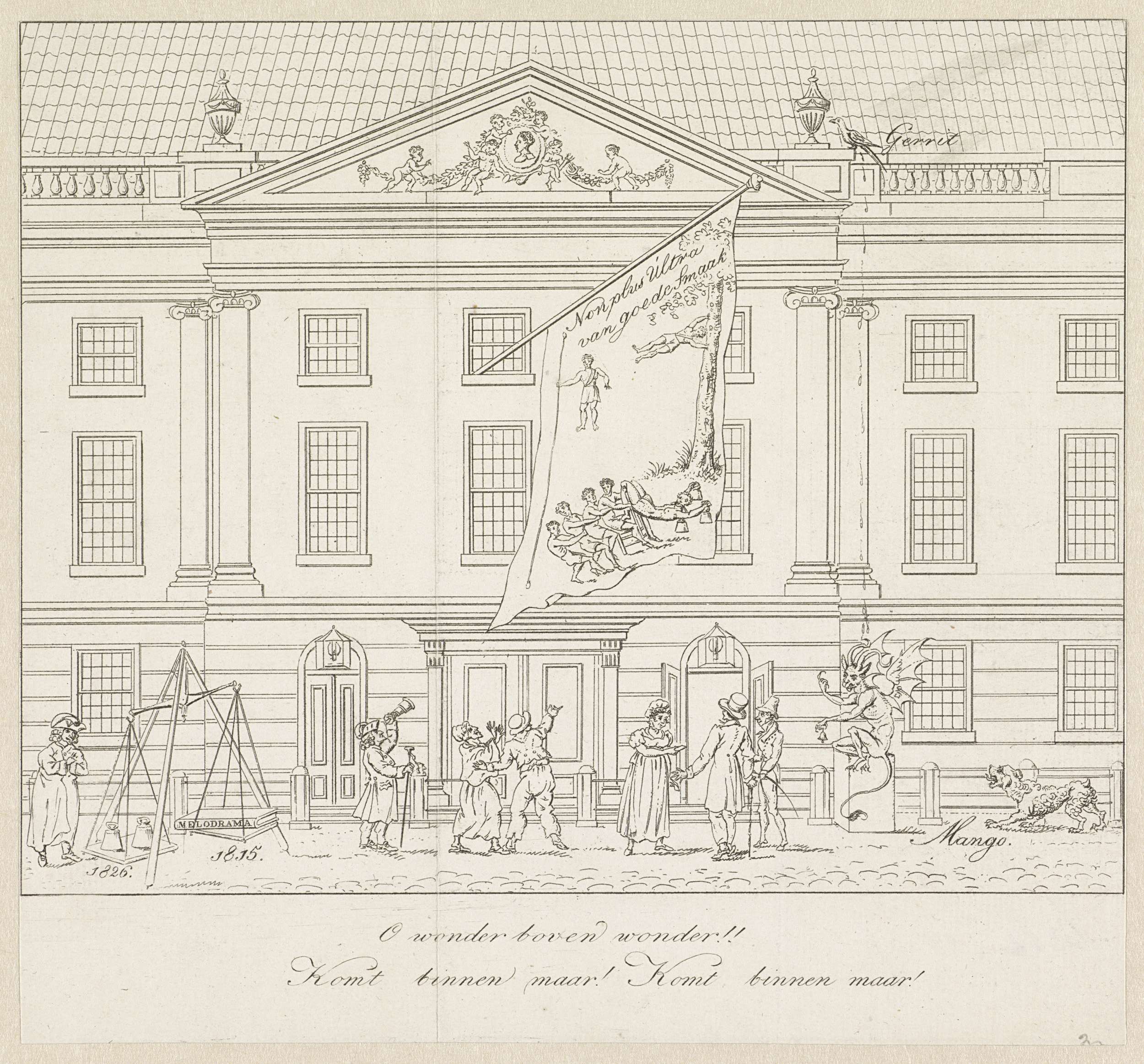 Spotprent op de wansmaak van voorstellingen in de sc...