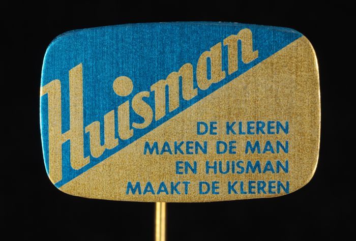 Metalen reclamespeld van "Huisman" kleding