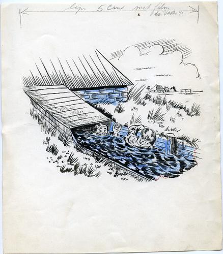 Tekening in kleur van twee drenkelingen in de uitstr...