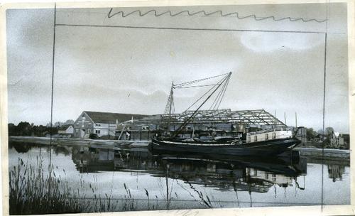 Foto in zwart-wit van een loods voor een sorteerinri...