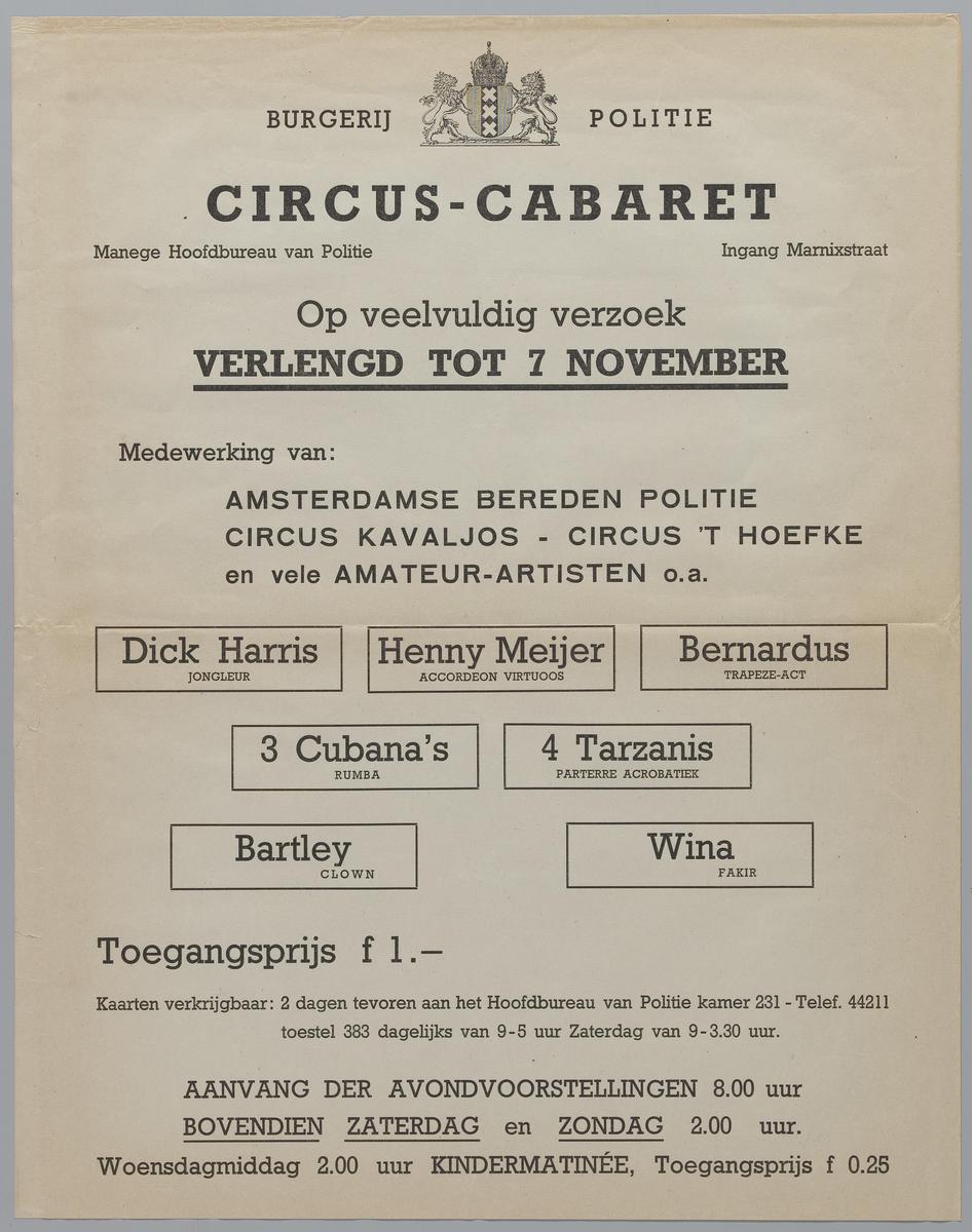 Circus-Cabaret in de manege van het Hoofdbureau van ...