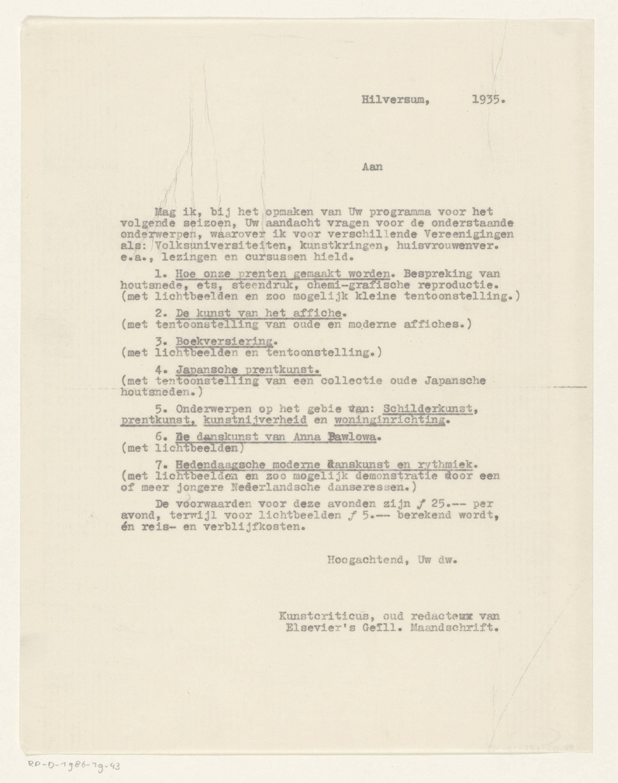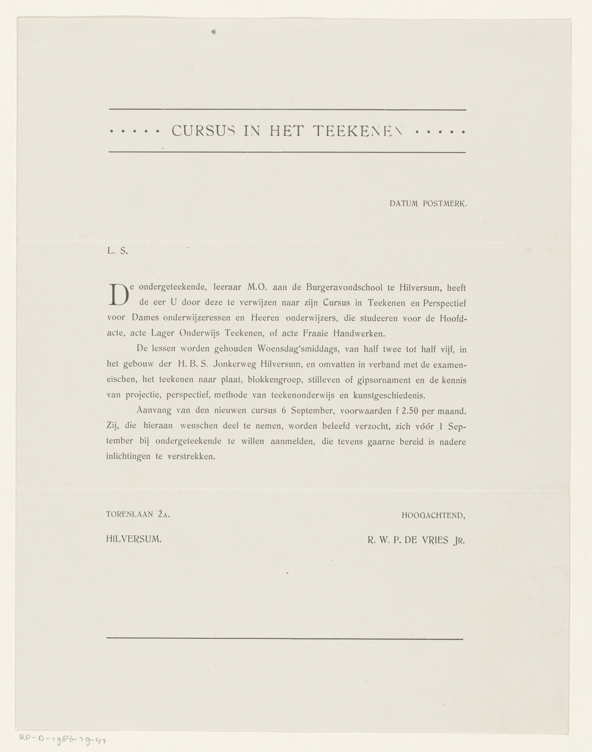 Brief aan R.W.P. de Vries Jr.