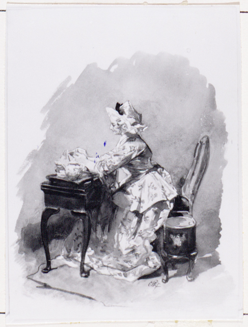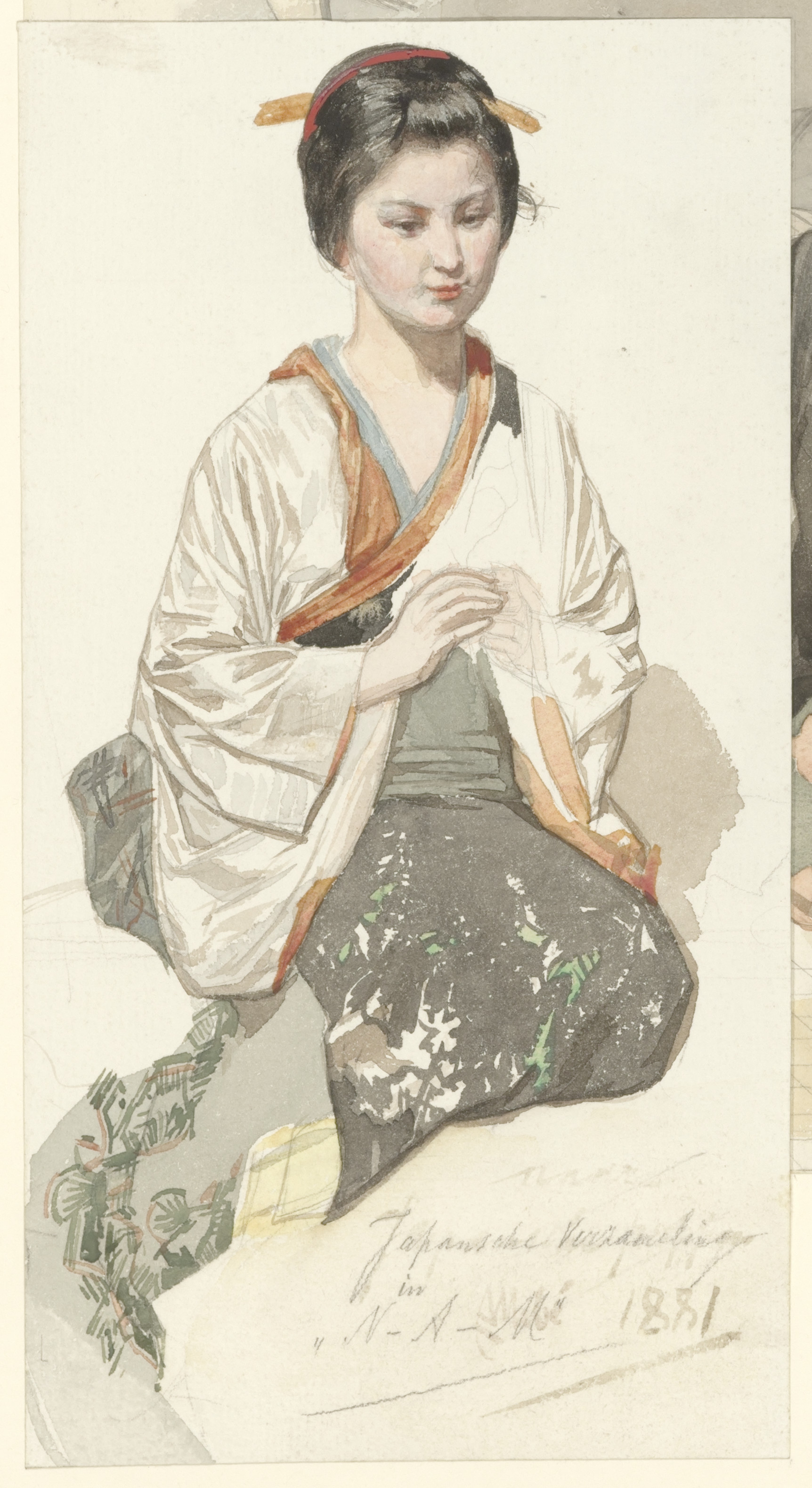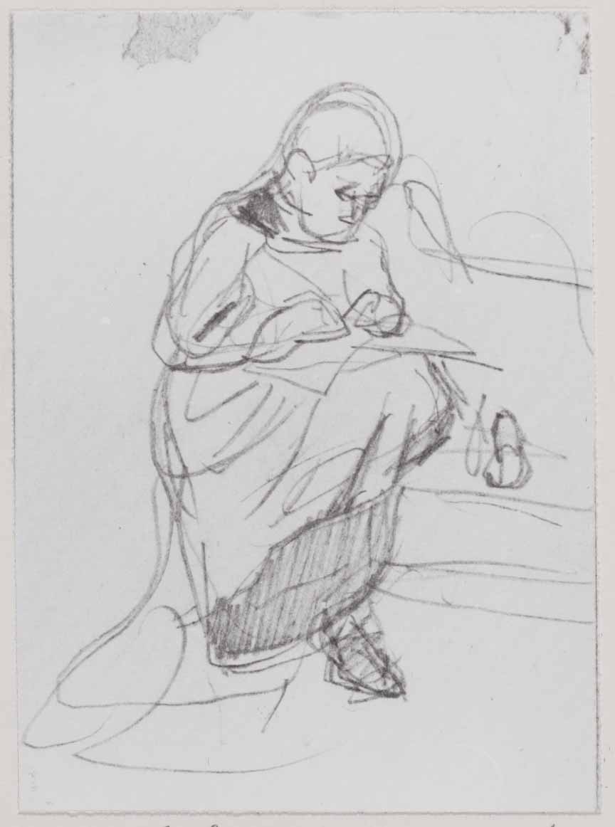 Zittende of knielende vrouw, in oosterse kleding