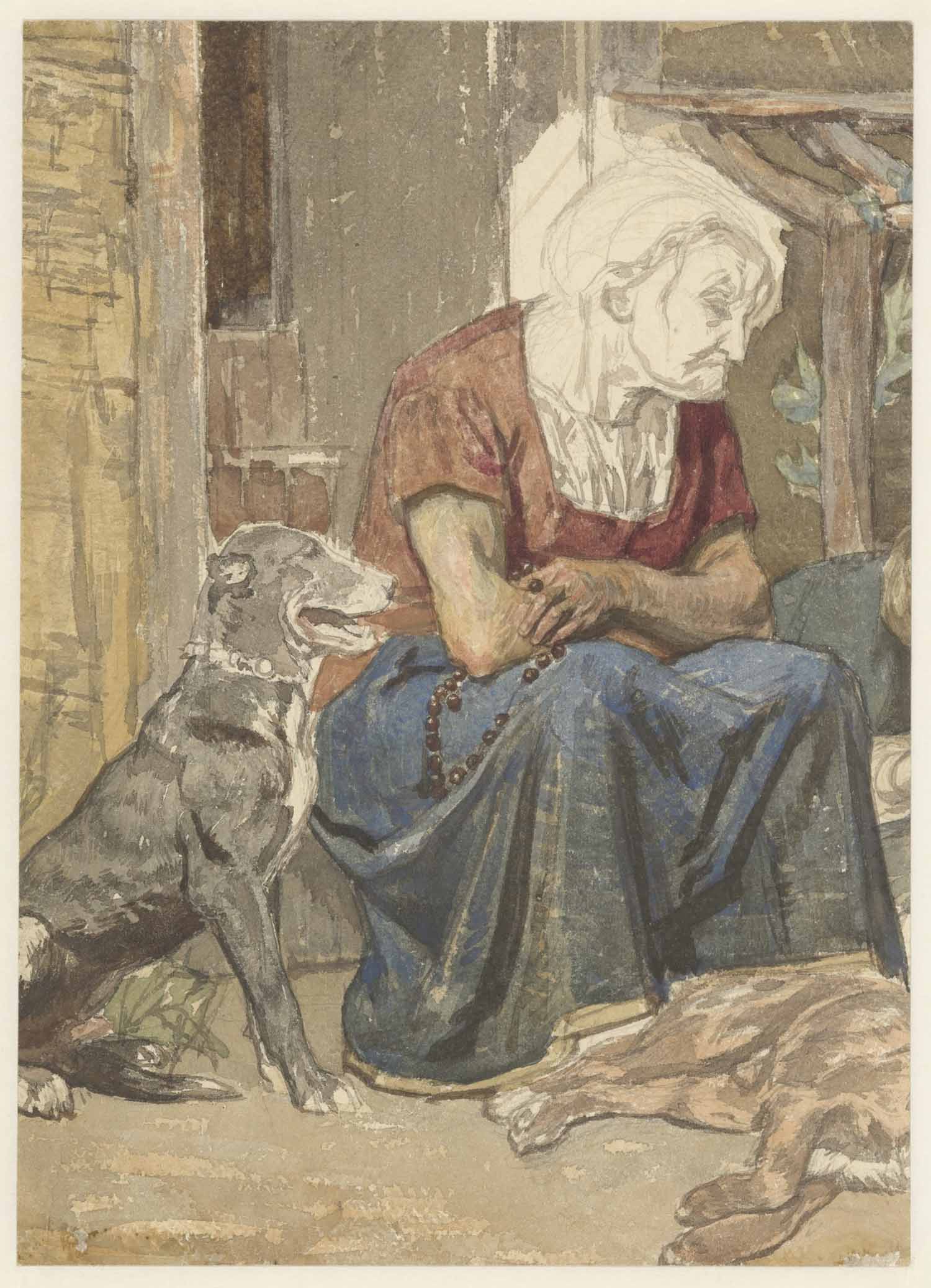 Oude Italiaansche vrouw met honden