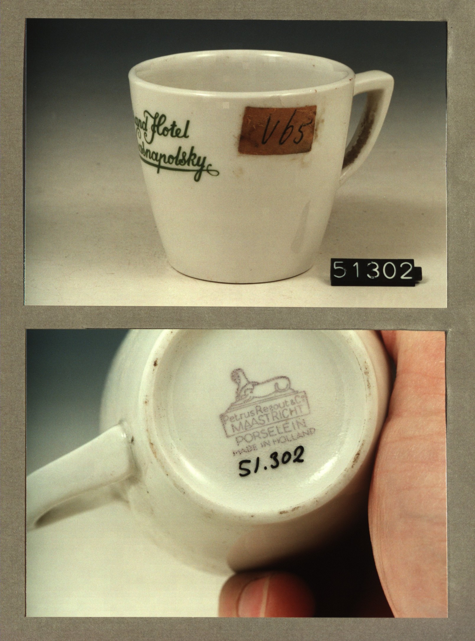 Kop met opschrift, model P2 met decor Hotel cafe res...