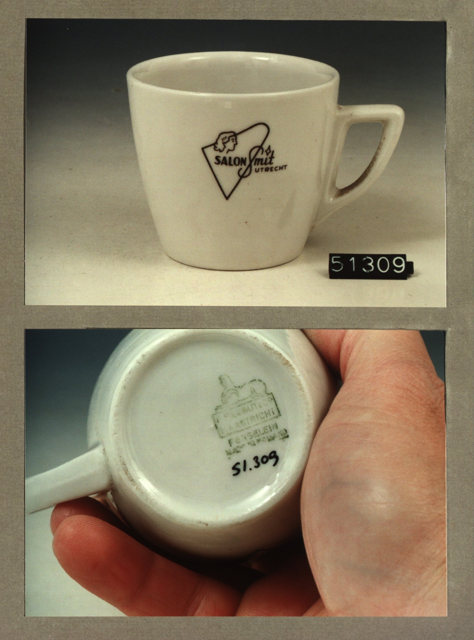 Kop met opschrift, model P2 met decor Salon Smit Utr...