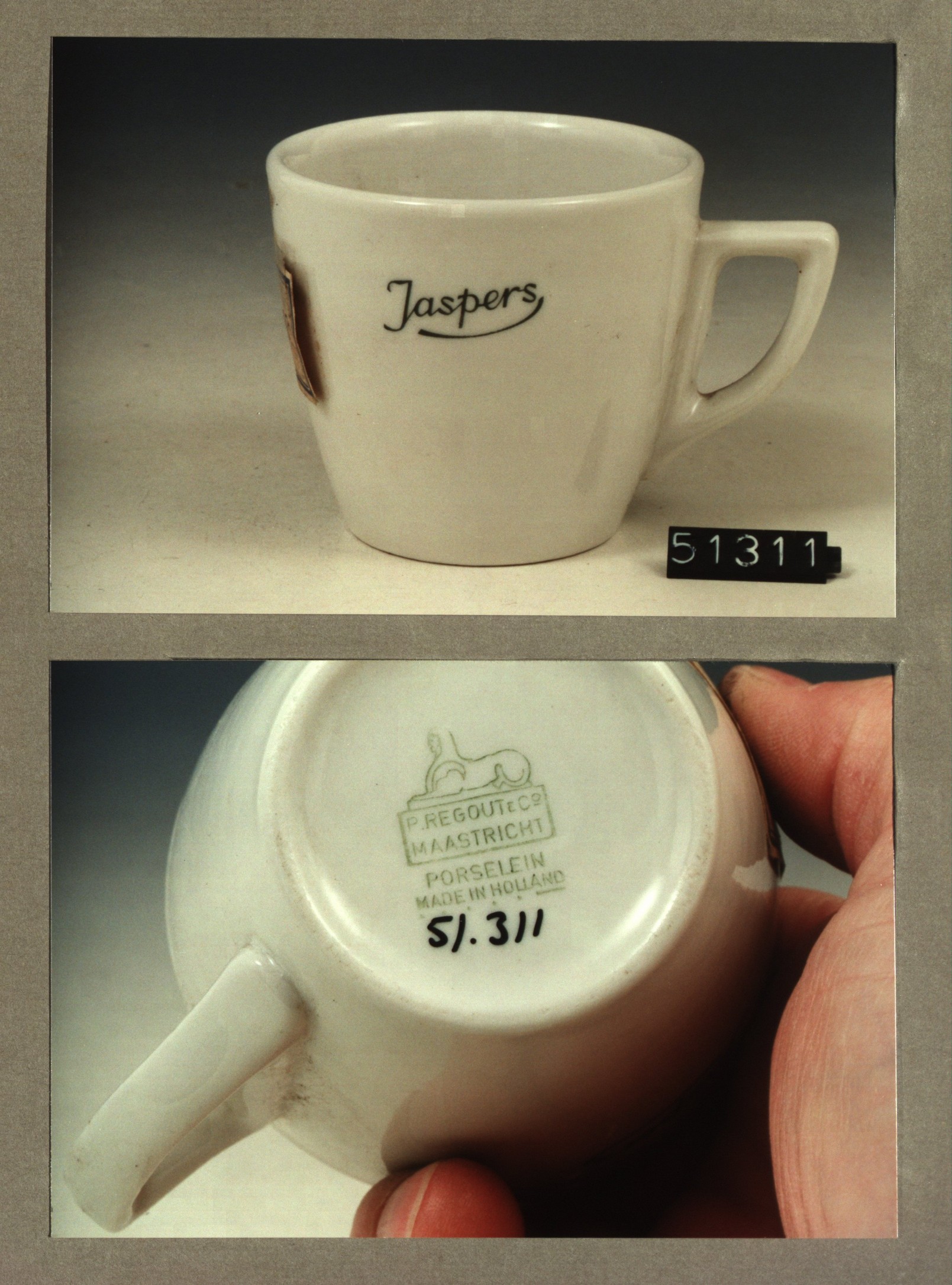 Kop met opschrift, model P2 met decor Cafe restauran...