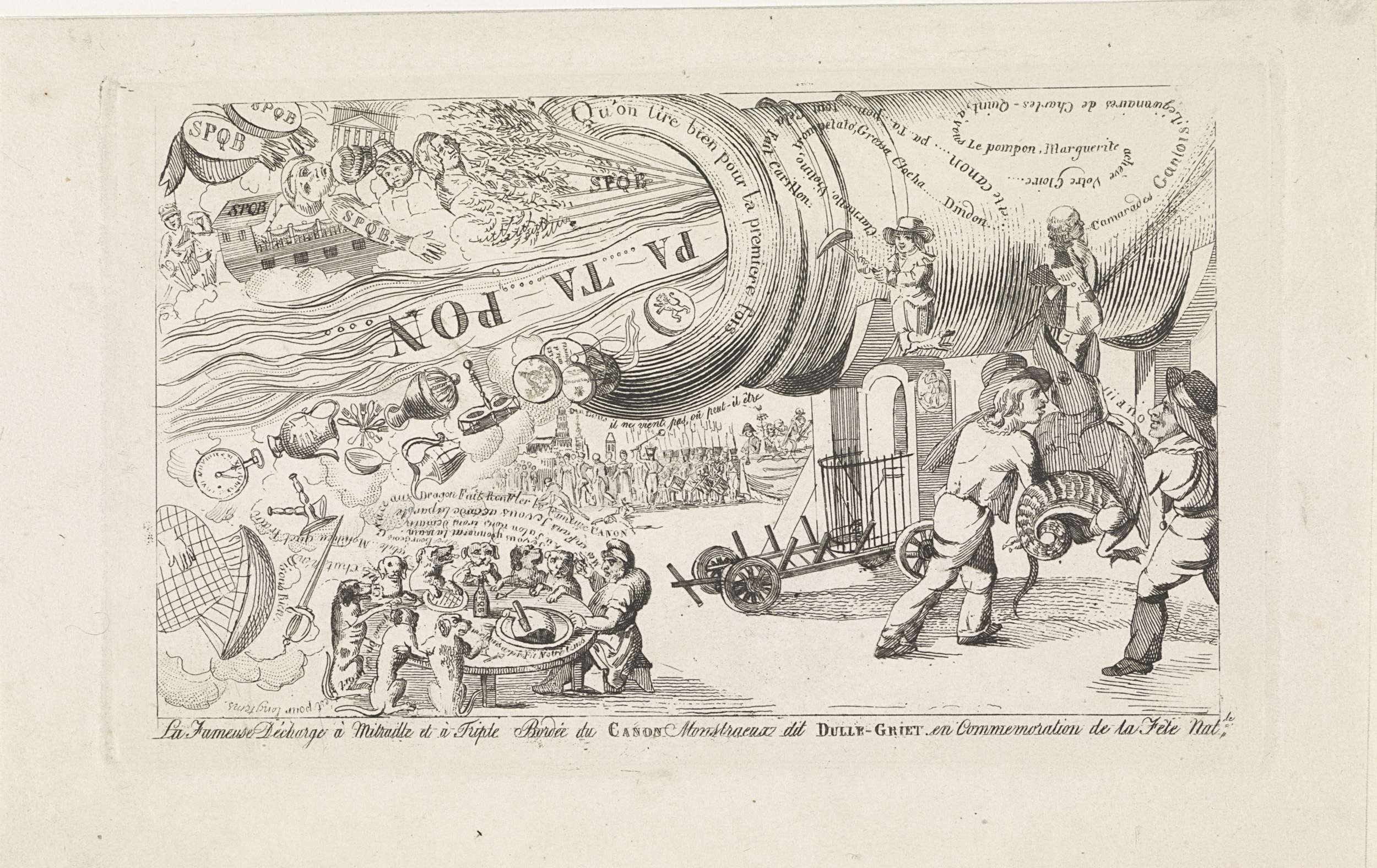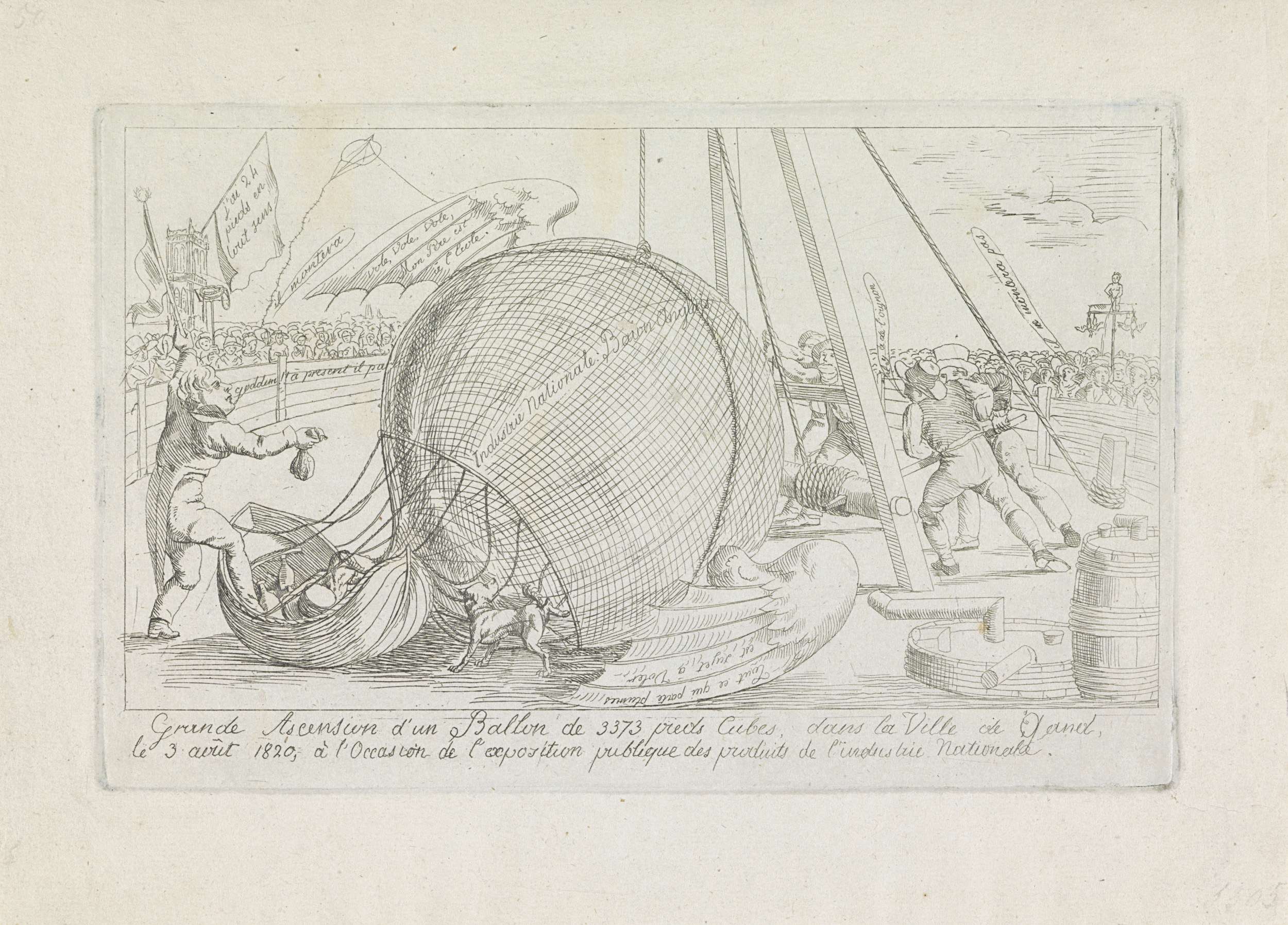 Spotprent op de mislukte ballonvaart te Gent, 1820