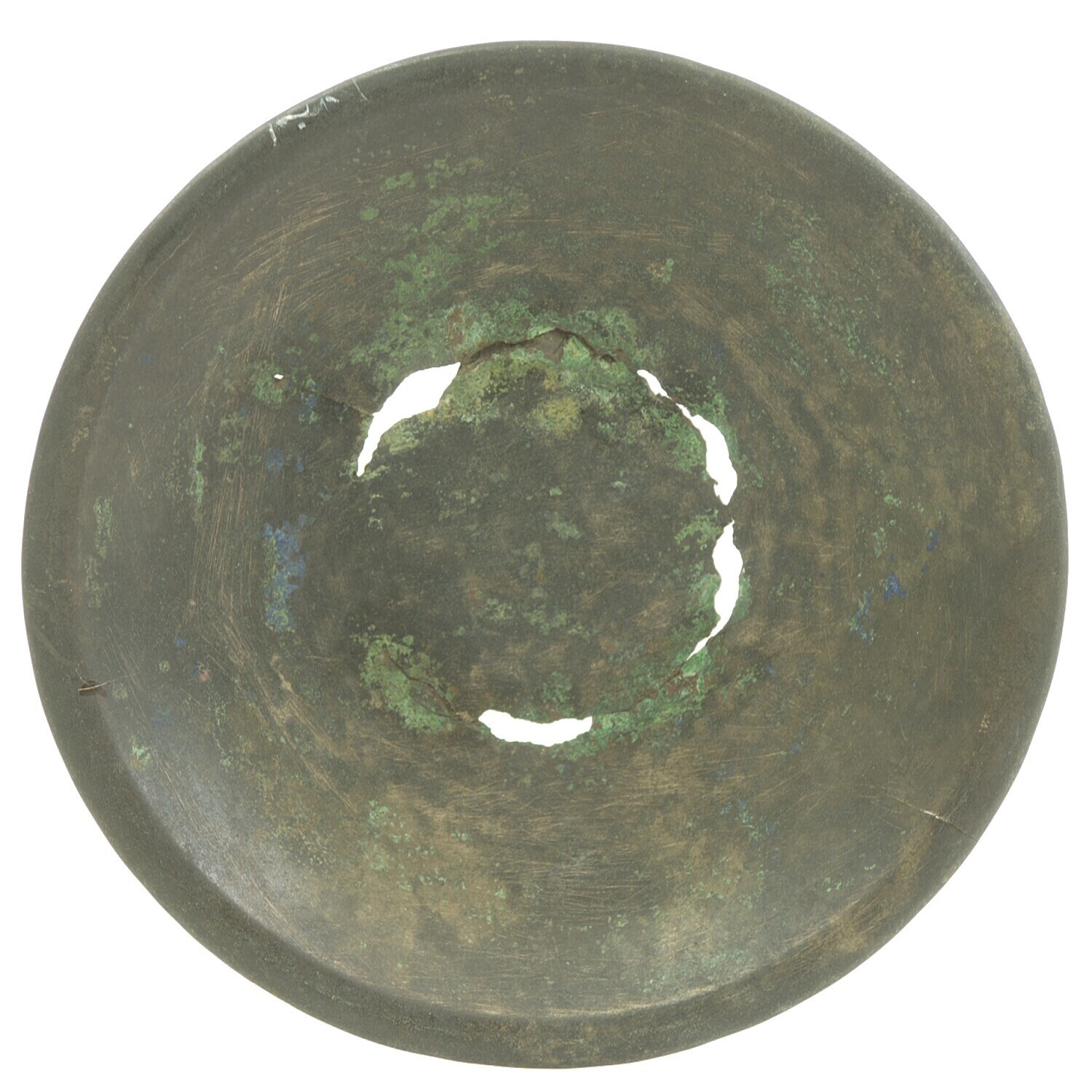 Ovaal bronzen plaatje met een ronde deuk in het midden