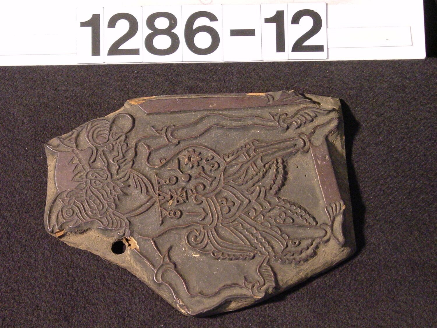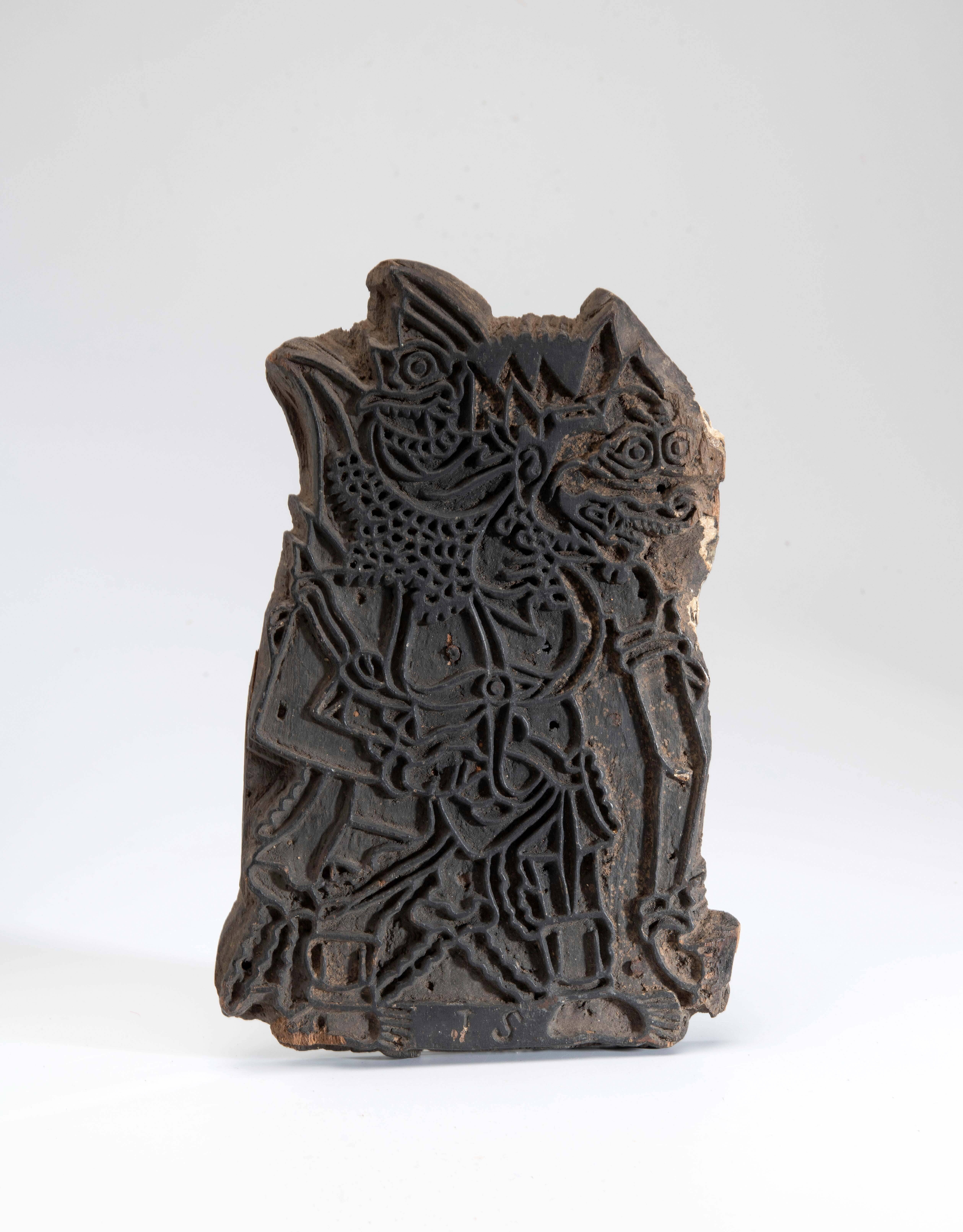 Houten cliché voor het drukken van een wajangfiguur ...