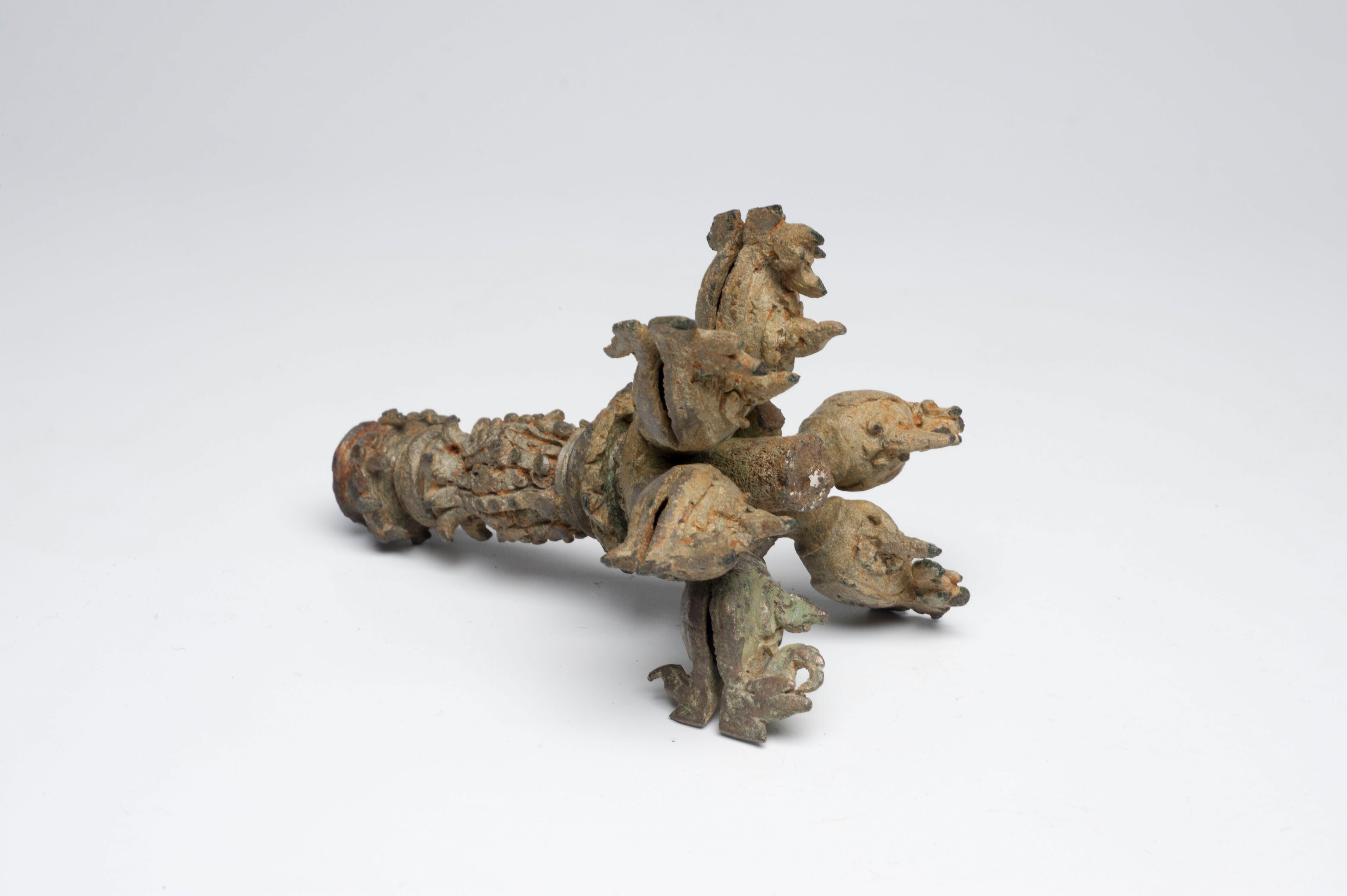 Bronzen topstuk van een ceremoniele bedelstaf of pri...