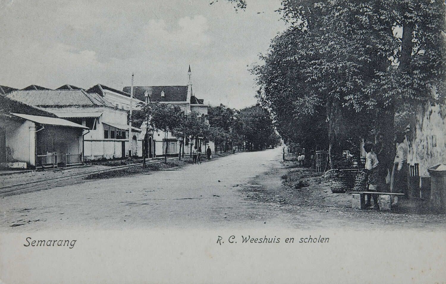 Straatgezicht bij het Rooms-Katholieke Weeshuis, sch...