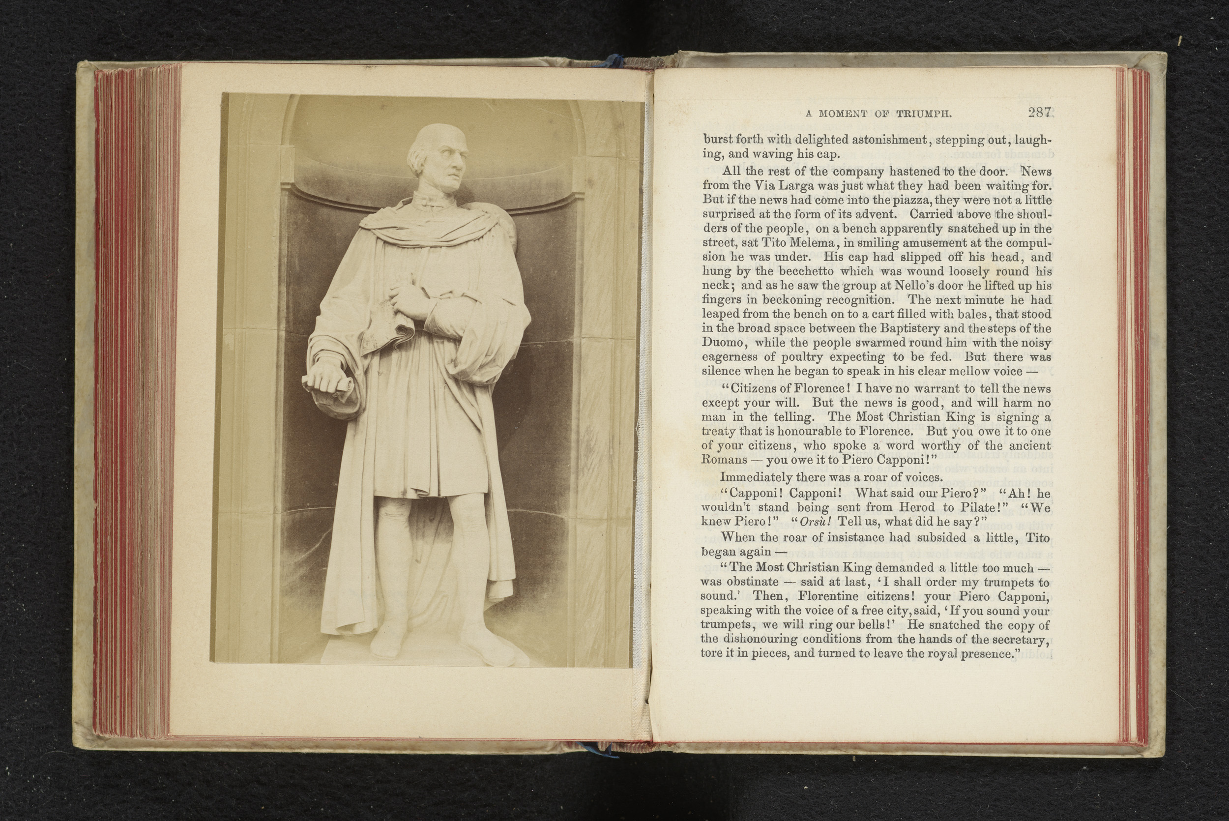 Beeld van Piero Capponi in een nis van de Uffizi, Fl...