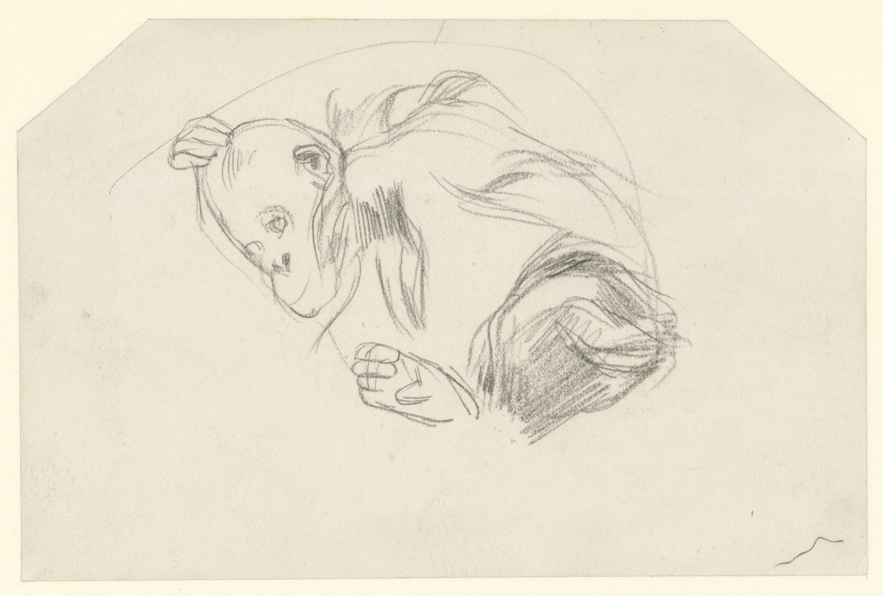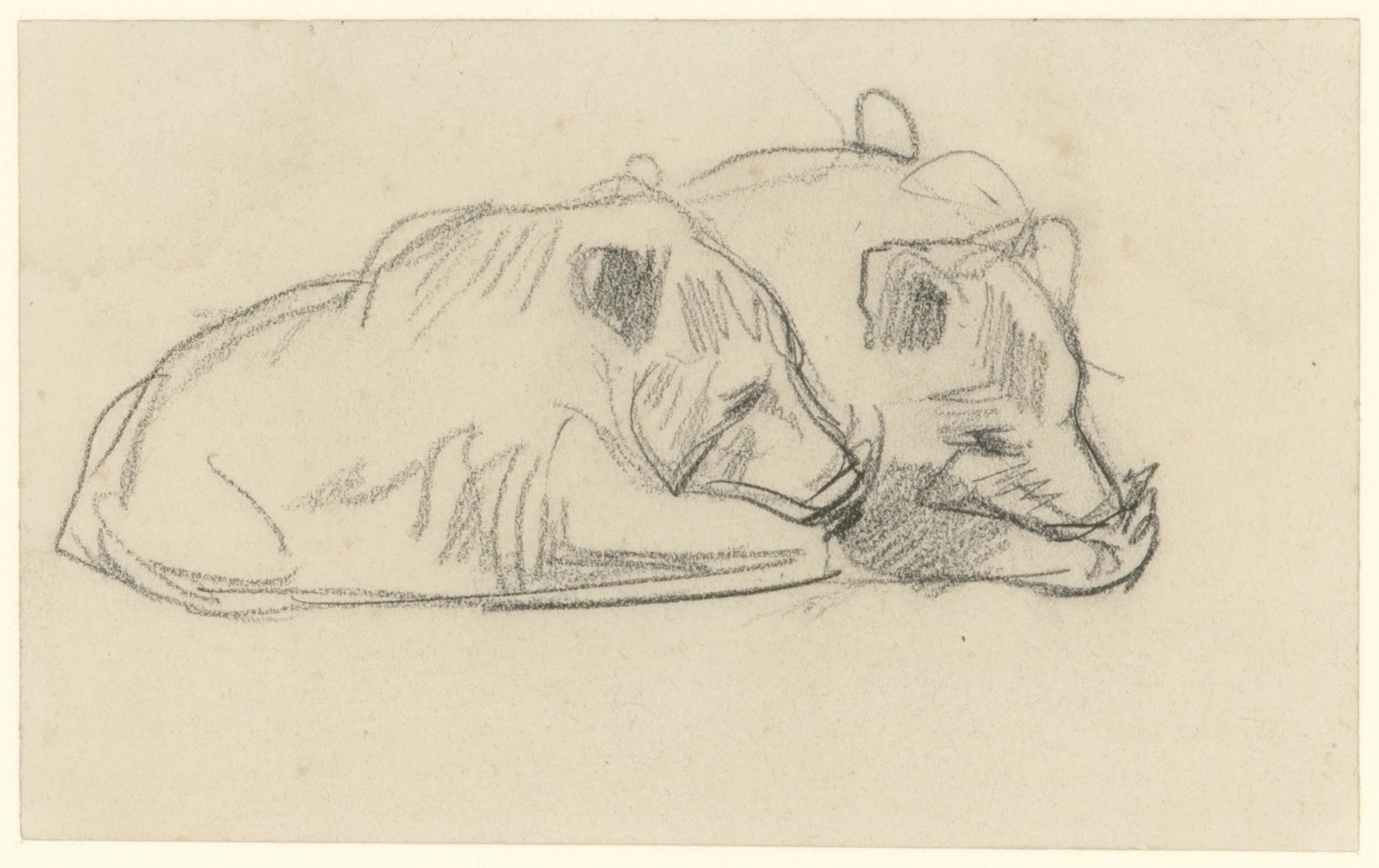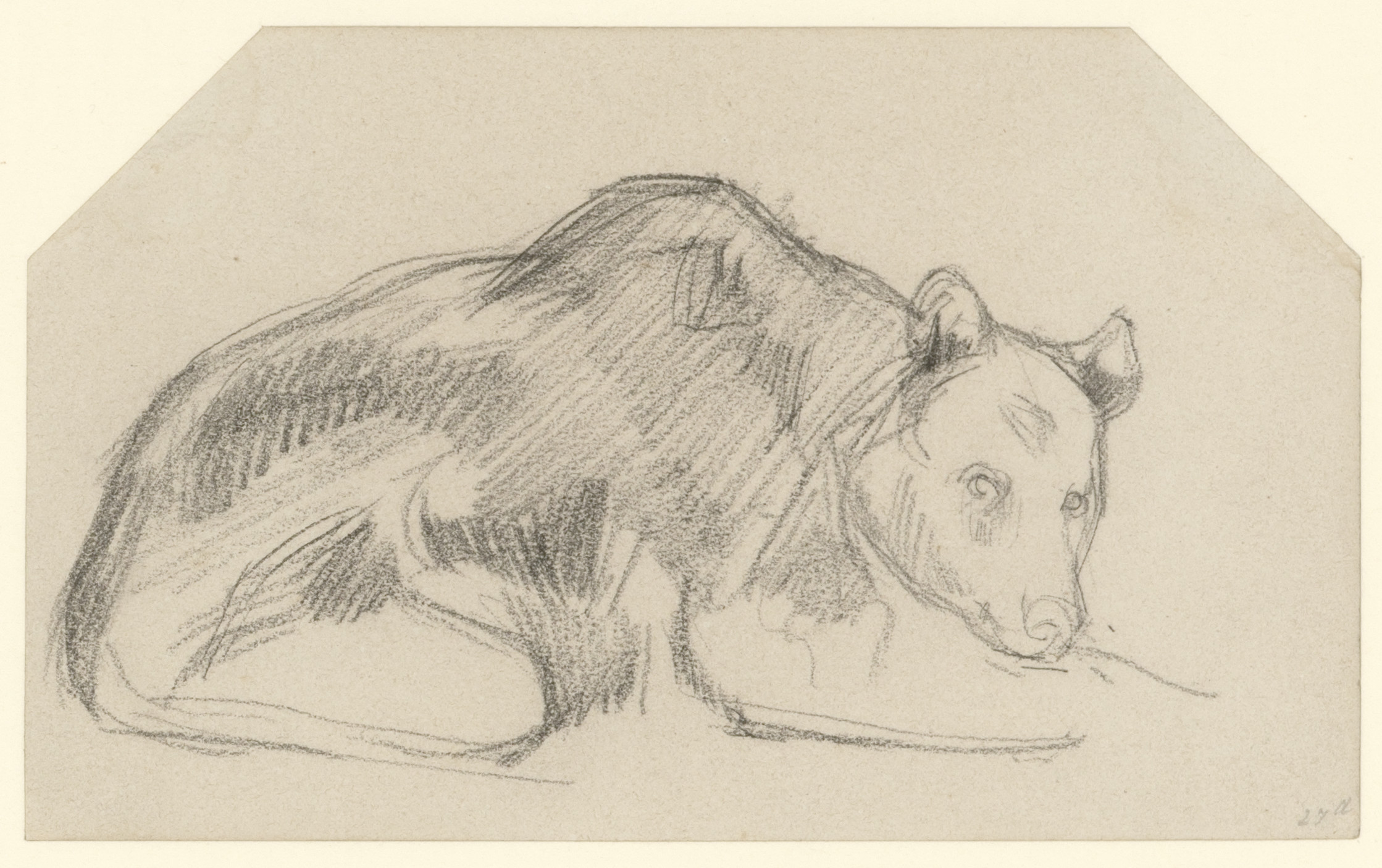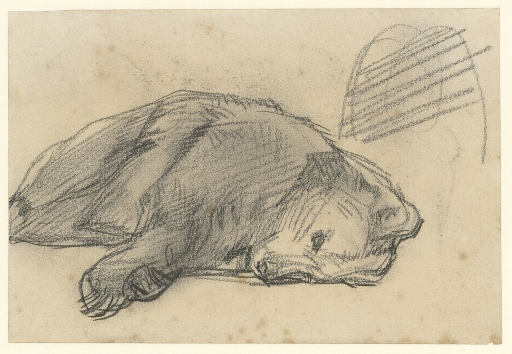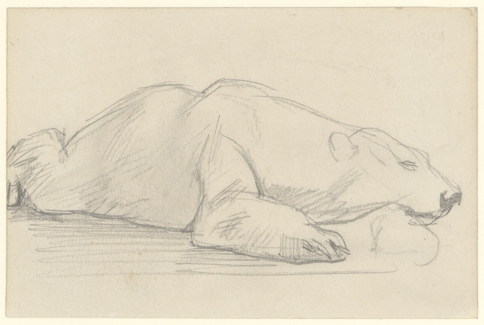 Studie van liggende ijsbeer (recto). Studie van aap ...